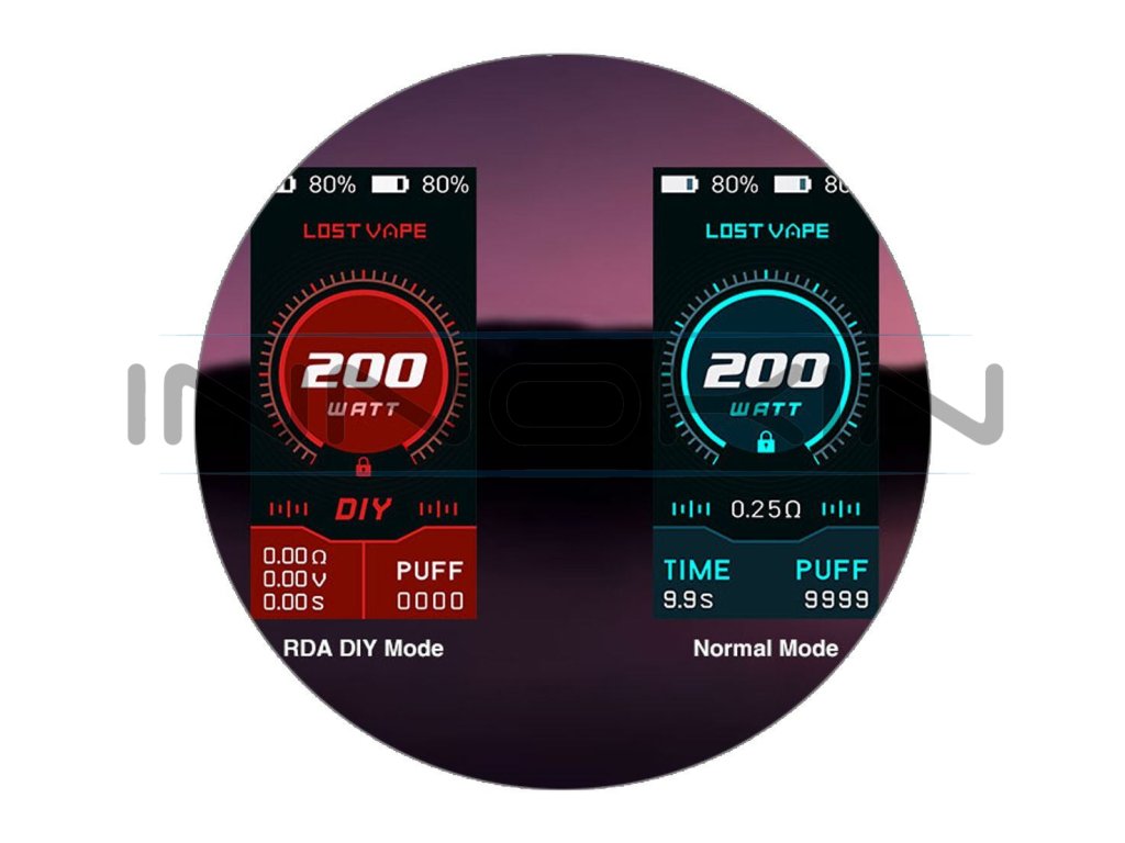 Mod inspirovaný barvami a odstíny přírodního charakteru s krásným semitransparentním tělem a přívětivými rozměry, to je ve zkratce Lost Vape Centaurus N200 Mod. Díky slotu na dvě externí baterie 18650 si dokáže poradit s ohromujícím výkonem až 200W a nabídne plnohodnotný zážitek i těm nejnáročnějším vaperům. Stejně jako jeho jednobaterkový sourozenec N100 je i tento mod opatřen čipsetem Quest 2.0 se dvěma režimy výstupu, rychlým náběhem žhavení, precizními výsledky při vapování a řadou bezpečnostních ochran. O hladké ovládání se postará přehledný panel s multifunkčním tlačítkem, regulačními klávesami, manuálním vypínačem a barevným TFT displejem. Lost Vape Centaurus N200 je ukázkou elegance, stylu a praktičnosti v jednom jediném těle.