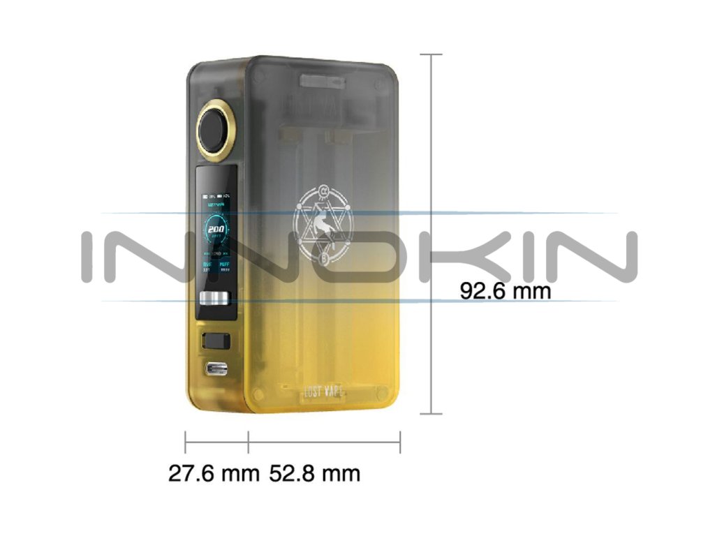 Lost Vape Centaurus N200 je dalším designovým kouskem do rodiny box modů Centaurus. Přináší krásně zpracovanou konstrukci a semitransparentní tělo z polykarbonátu. Tradiční box mod design zaručuje pohodlné držení v dlani během vapování a díky polykarbonátové konstrukci je mod také velice lehký, celková hmotnost činí pouhých 108 g. K dostání je v pestrých barvách inspirovaných odstíny přírody.