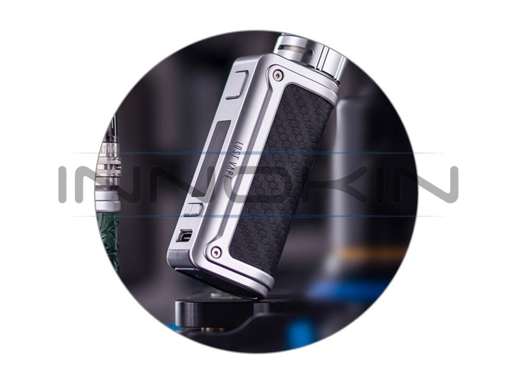 Nový model série Thelema od výrobce Lost Vape s označením Thelema Mini kombinuje výhody klasických kompaktních e-cigaret a pokročilejších gripů, výrobce všechny funkce navíc zabalil do sympaticky kapesního těla, díky čemuž je celý grip nesmírně skladný a snadno se užívá. Tělo je vyrobeno z kombinace zinkové slitiny a nerezové oceli, zadní zaoblená část nabídne stylovou povrchovou úpravu pro ještě estetičtější vzezření, na které jste u tohoto prémiového výrobce zvyklí. Rozměry samotného modu činí jen 70,5 x 32,8 x 24,6 mm, skvěle proto padne do dlaně a pohodlně se z něj vapuje díky ergonomicky umístěnému spínacímu tlačítku v přední části. Mod nabídne praktické a jednoduché ovládání, se kterým si hravě poradí jakýkoliv uživatel. V přední části se nachází dvě regulační tlačítka a čitelný displej, na kterém si pohodlně nastavíte vše potřebné.