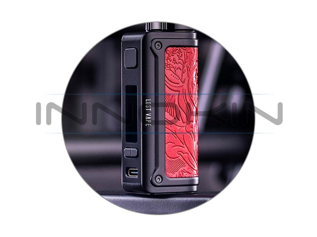 Mod Thelema Mini pokračuje v zaběhnuté tradici výrobce Lost Vape, který si u všech svých zařízení potrpí na překrásné designové zpracování. Můžete se tak těšit na kvalitní kovovou konstrukci modu vyrobenou z kombinace zinkové slitiny a nerezové oceli, kterou doprovází stylový potah zadního panelu z kůže, či karbonu. Už na první pohled budí mod dojem luxusu, jako tomu bývá zvykem i u dalších gripů tohoto renomovaného výrobce.