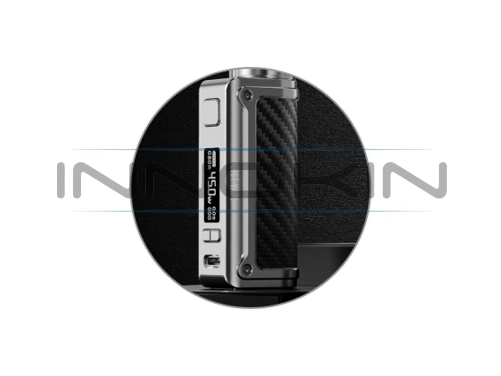 Nový model série Thelema od výrobce Lost Vape s označením Thelema Mini kombinuje výhody klasických kompaktních e-cigaret a pokročilejších gripů, výrobce všechny funkce navíc zabalil do sympaticky kapesního těla, díky čemuž je celý grip nesmírně skladný a snadno se užívá. Tělo je vyrobeno z kombinace zinkové slitiny a nerezové oceli, zadní zaoblená část nabídne stylovou povrchovou úpravu pro ještě estetičtější vzezření, na které jste u tohoto prémiového výrobce zvyklí. Rozměry samotného modu činí jen 70,5 x 32,8 x 24,6 mm, skvěle proto padne do dlaně a pohodlně se z něj vapuje díky ergonomicky umístěnému spínacímu tlačítku v přední části. Mod nabídne praktické a jednoduché ovládání, se kterým si hravě poradí jakýkoliv uživatel. V přední části se nachází dvě regulační tlačítka a čitelný displej, na kterém si pohodlně nastavíte vše potřebné.