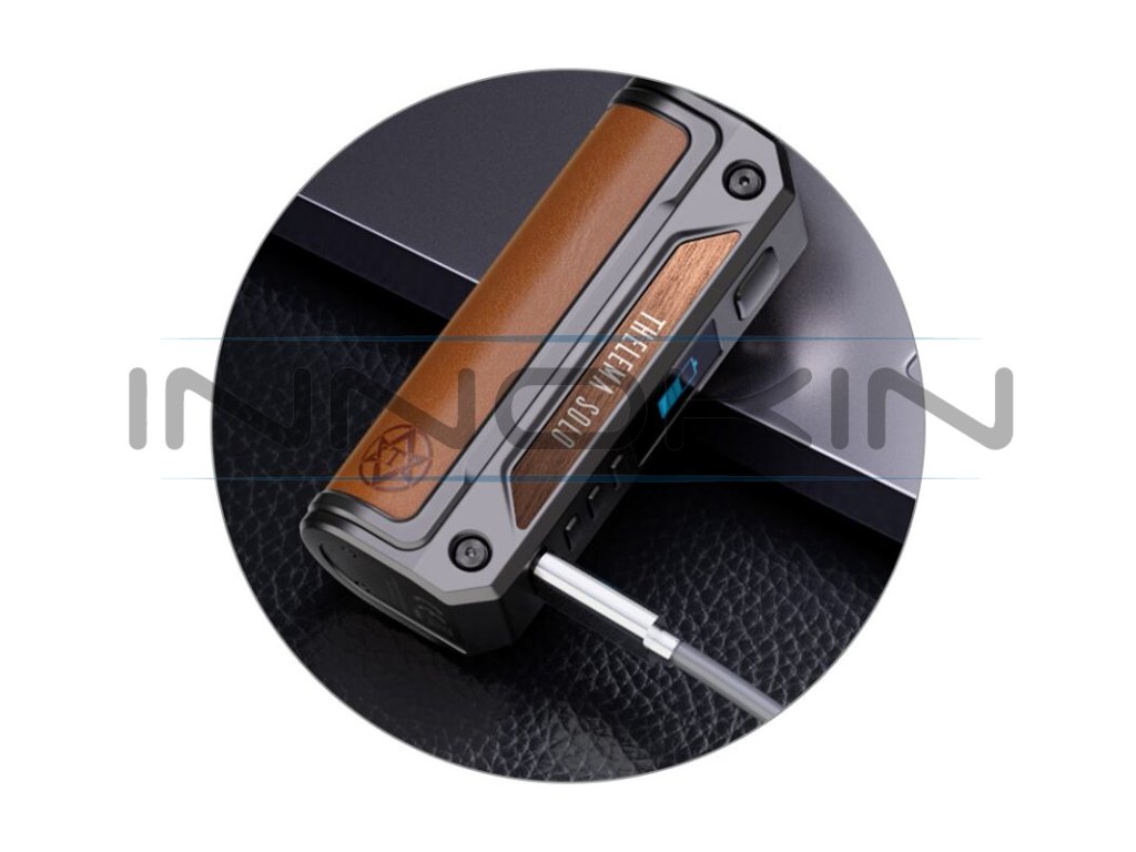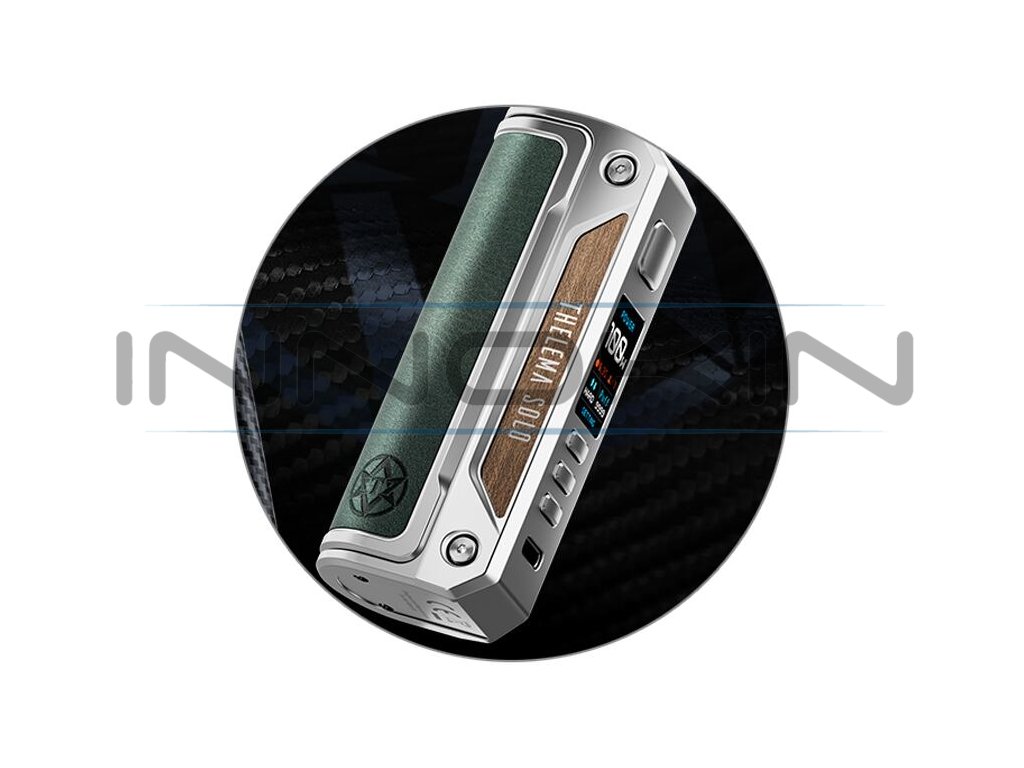 Oblíbený výrobce prémiových modů Lost Vape se vrací na scénu s vyladěným modem pro každodenní využití. Lost Vape Thelema Solo Mod je sympatický jednobaterkový mod s luxusním designem a prvotřídním čipem Quest 2.0, který působí nejen elegantním dojmem, ale zároveň dodá každému potahu také potřebný výkon a ten správný říz. Mod nabídne praktické rozměry, které činí jen 104 x 32,6 x 44,2 mm. Tělo je vyrobeno z kvalitní zinkové slitiny, kterou doplňuje kryt baterie v zadní části potažený kůží, nebo karbonem. Do těla modu je možné nainstalovat jednu baterii typu 21700 pro dosažení maximálního výkonu až 100 W. Samozřejmostí je potom možnost použití také menší baterie typu 18650 s adaptérem. Svou vlastní baterii si budete moci pohodlně dobíjet přímo uvnitř modu díky portu USB-C. Ve vrchní části modu potom najdete závit typu 510 pro kompatibilitu se stejným typem závitu u vašeho atomizéru. Díky široké vrchní ploše mod skvěle pracuje s atomizéry do průměru až 28 mm.