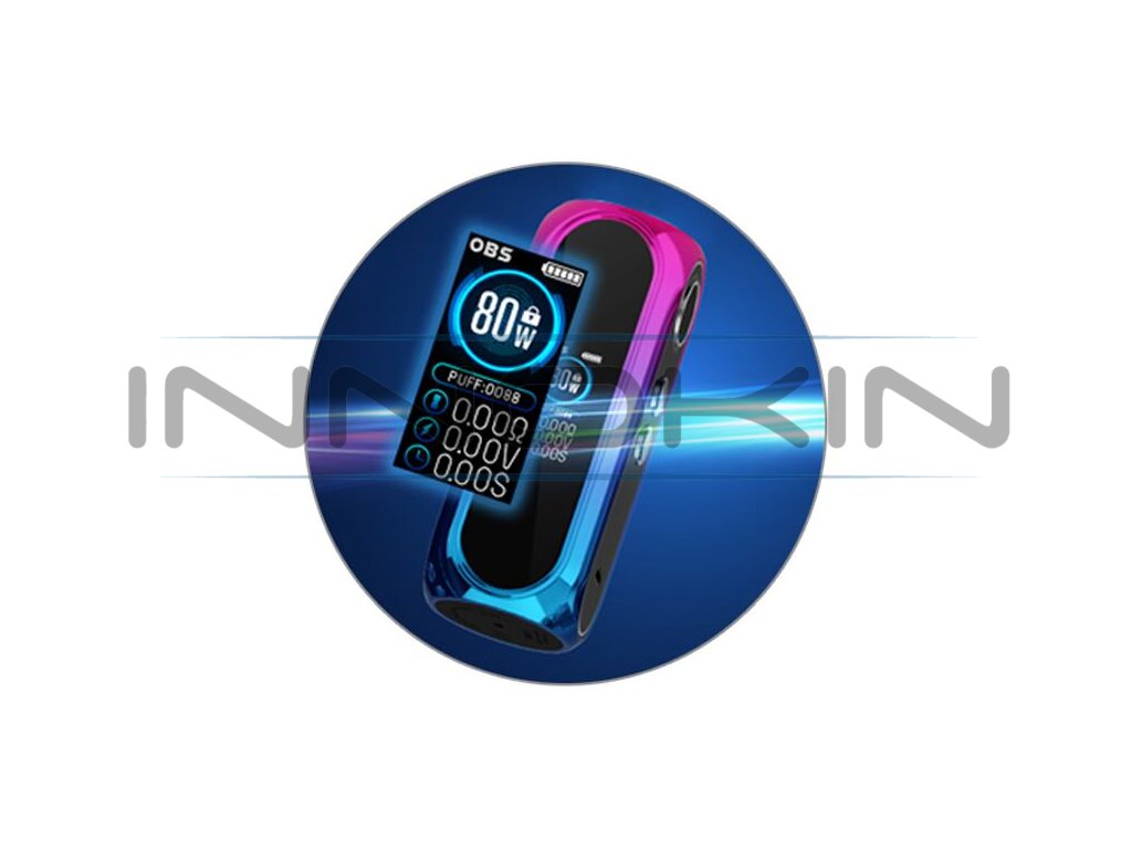 V boční části se nachází obrovský displej s přívětivým uživatelským rozhraním pro snadné nastavení. Na displeji budete mít neustálý přehled o aktuálně nastaveném výkonu, odporu atomizéru, nebo výstupním napětí z baterie. Výkon u modu lze regulovat pomocí bočních regulačních tlačítek v rozmezí 5 - 80 W.