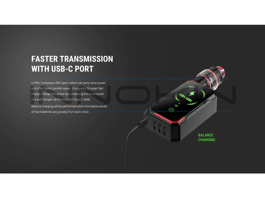 Samotný Grip je uživatelsky velmi přívětivý a skvěle padne do ruky. Nabízí naprosto neskutečný výkon až 230W, což v kombinaci s dobře zvolenou žhavící hlavou zaručuje tvorbu hustého dýmu a uspokojí tak tedy i nejnáročnější uživatele elektronických cigaret. Grip Smok G-priv 3 pohání dvě baterie typu 18650 (nejsou součástí setu), které by měly, chcete-li dosahovat stabilně vysokých výkonů alespoň 20A.