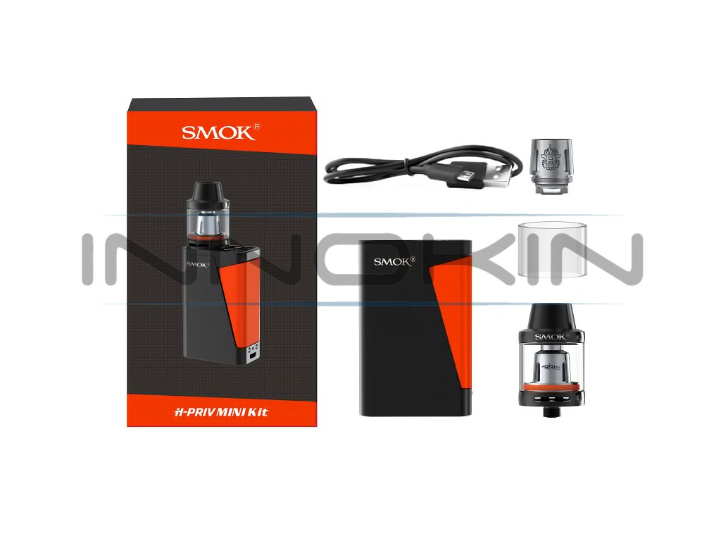 H-PRIV Mini je menší verze oblíbeného gripu od společnosti Smoktech se špičkovým clearomizerem Brit Beast. Již nemusíte používat vyměnitelné monočlánky typu 18650, protože se můžete spolehnout na vestavěnou baterii o kapacitě 1650mAh. Nastavitelný výkon až 50W naznačuje možnost spolupráce s nízkooporovými clearomizery. Teplotu lze nastavit libovolně od 100°C - 315°C, jejímž výsledkem je lepší podání chuti, spotřeba liquidu a výdrž baterie. Spínací tlačítko je chytře zpracováno do boční strany pro jednoduché ovládání a pro jedinečný designe. Zmíněný clearomizer Brit Beast o kapacitě 3,5ml, využívá horní plnění...po odšroubování horní části plníte otvorem přímo do těla clearomizeru (viz foto v příloze). Na spodní části clearomizeru lze využít regulaci přívodu vzduchu pro ještě lepší kouřivost. Clearomizer je kompatibilní s žhavicími hlavami TFV8 Baby....