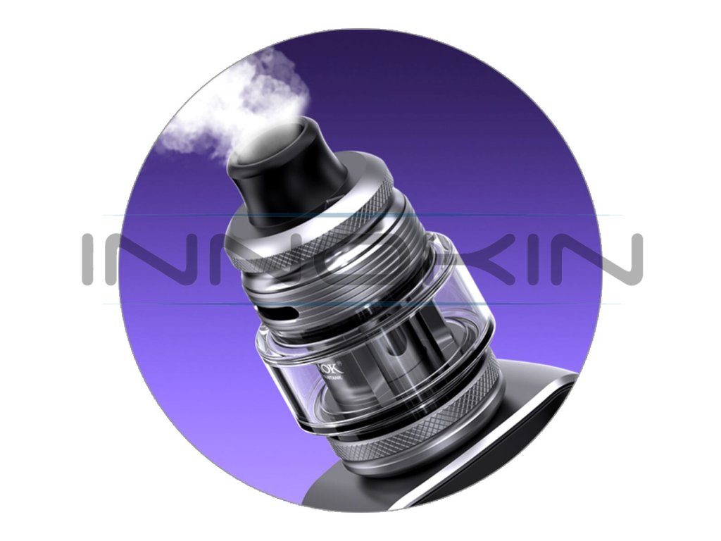 U atomizéru nesmí chybět také přepracovaný systém regulace airflow. Ten se nachází v horní části atomizéru, eliminuje tak problémy s možným vytečením e-liquidu spodním vzduchovým otvorem a zároveň přináší lepší cirkulaci vzduchu v atomizéru a s tím spojené výraznější podání chuti. Systém je plně regulovatelný a umožní vám snadnou volbu mezi volnější nebo utaženější formou DL potahu.