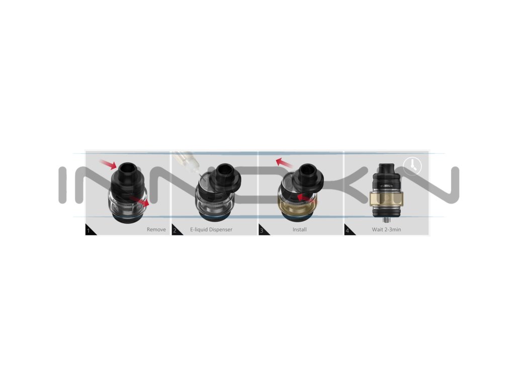 Hlavní výsadou atomizéru je zejména jeho obrovský objem. V sadě X-Priv Solo se atomizér TF-D Subtank pyšní výchozím objemem 3,5 ml s rovným pyrexovým tělem. V balení potom najdete také druhé náhradní sklo, tentokrát v provedení bubble, které nabídne objem 5,5 ml. V případě nutnosti opětovného naplnění pak stačí jednoduše vysunout horní top cap do strany a skrz silikonovou membránu doplnit e-liquid do plné kapacity během několika málo sekund.