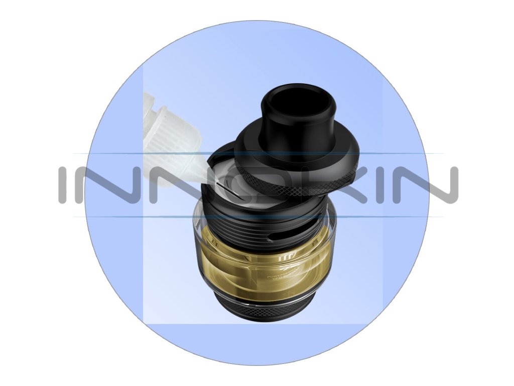 U atomizéru nesmí chybět také přepracovaný systém regulace airflow. Ten se nachází v horní části atomizéru, eliminuje tak problémy s možným vytečením e-liquidu spodním vzduchovým otvorem a zároveň přináší lepší cirkulaci vzduchu v atomizéru a s tím spojené výraznější podání chuti. Systém je plně regulovatelný a umožní vám snadnou volbu mezi volnější nebo utaženější formou DL potahu.