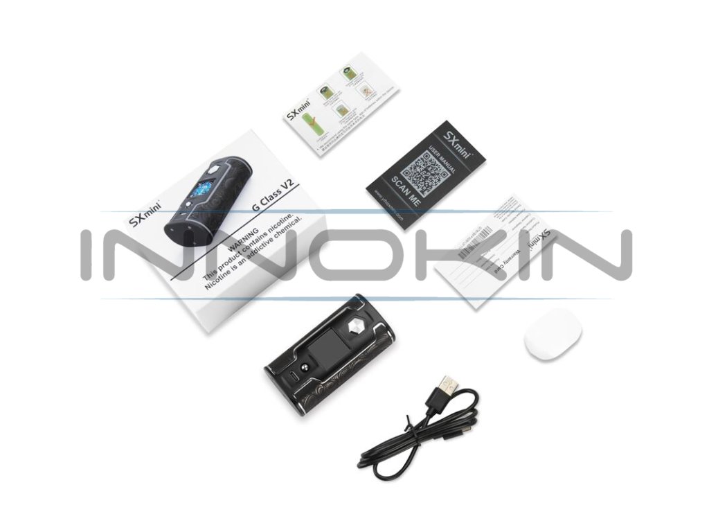 Mod SXmini G Class V2 láká nejen na pokročilé uživatelské funkce, ale v prvé řadě na excelentní a nádherný design. Tělo je vyrobeno z kombinace kovových slitin, jmenovitě potom ze zinkové slitiny a hliníkové slitiny. Všechny části modu jsou do detailu vybroušené a všechny součásti na sebe perfektně doléhají. Samozřejmostí jsou také co nejmenší rozměry 94 x 47,7 x 34,3 mm pro pohodlné užívání. Mod nabídne také populární zaoblené hrany pro perfektní ergonomii během užívání.