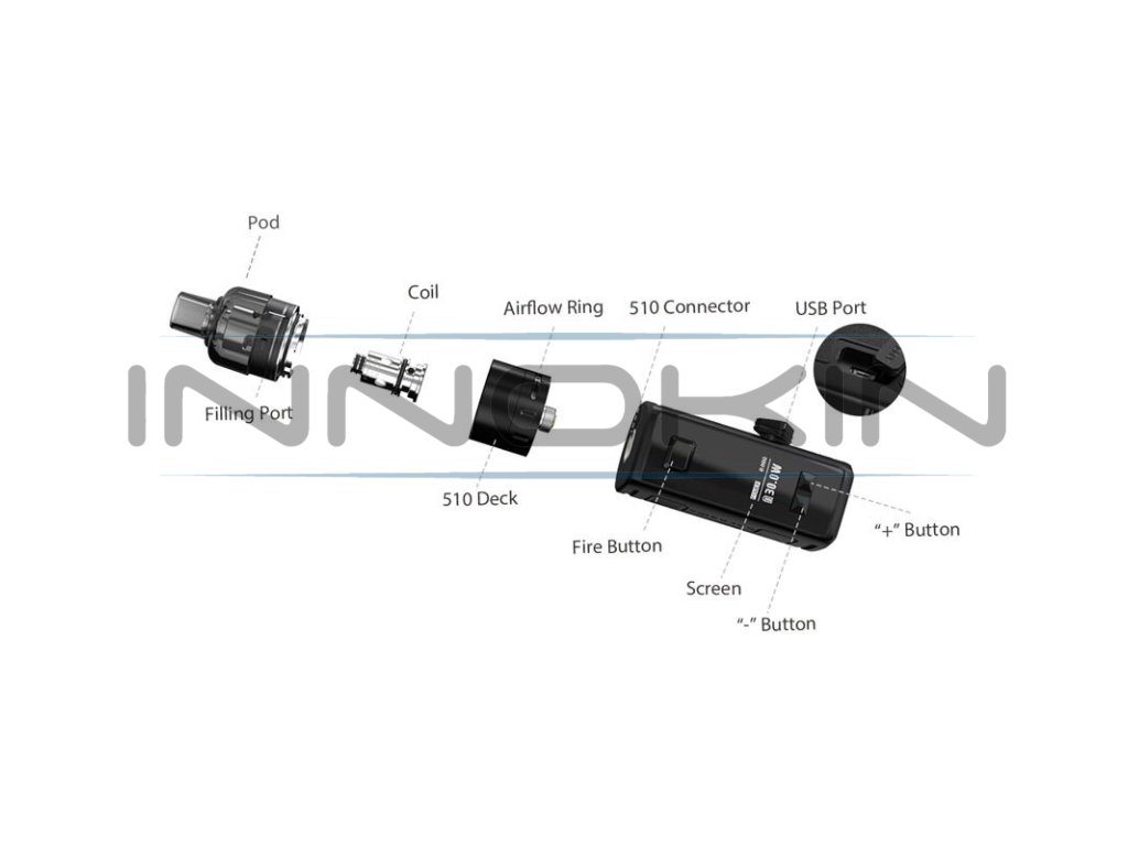V kompaktním těle modu se nachází integrovaná baterie s kapacitou 950 mAh. Tato baterie se postará o skvělý náběh žhavení a dlouhou výdrž i při intenzivním používání. V případě potřeby pak stačí připojit micro USB kabel k portu na zařízení a baterii si můžete opět kdykoliv pohodlně dobít. Lze dobíjet proudem až 1A.