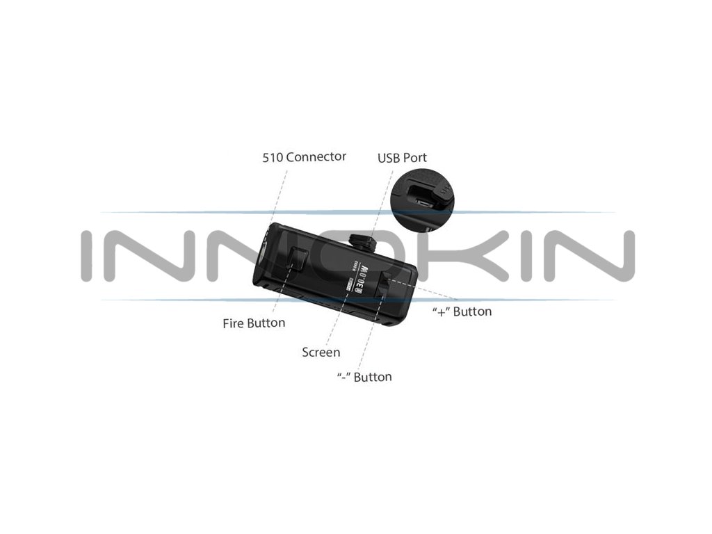 V kompaktním těle modu se nachází integrovaná baterie s kapacitou 950 mAh. Tato baterie se postará o skvělý náběh žhavení a dlouhou výdrž i při intenzivním používání. V případě potřeby pak stačí připojit micro USB kabel k portu na zařízení a baterii si můžete opět kdykoliv pohodlně dobít. Lze dobíjet proudem až 1A.