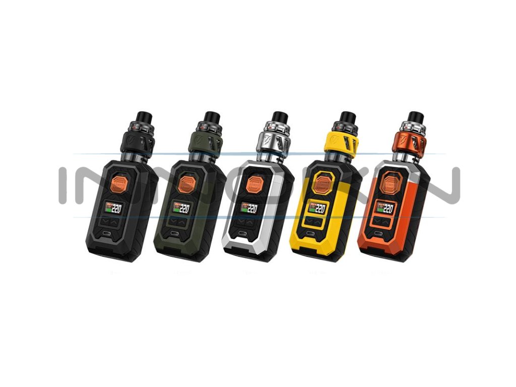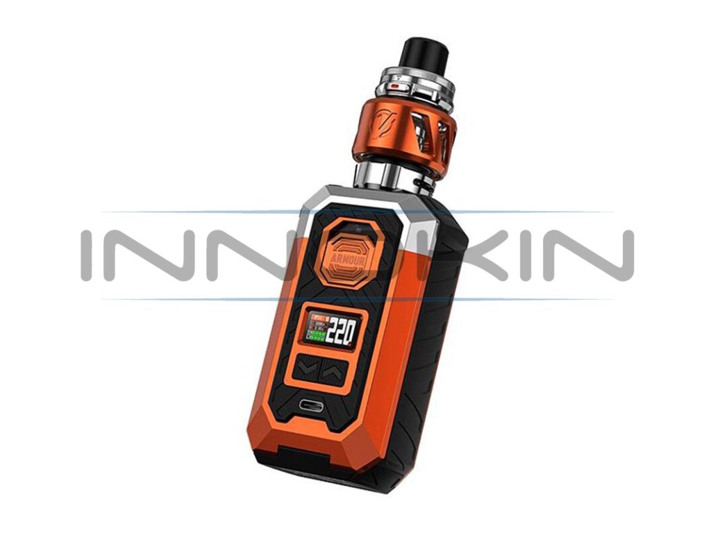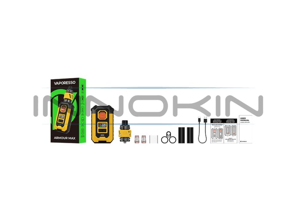 Dominantou zařízení je potom přední ovládací panel s unikátním Uni-Lock spínacím tlačítkem, jehož posouváním ho můžete jednoduše zajistit před nechtěným sepnutím při přenášení, nebo ho opětovně odemknout a žhavit. Na panelu se nachází také kompaktní displej se všemi důležitými parametry a přehledným rozhraním. Mod pracuje s řadou výstupních režimů, za zmínku stojí například úsporný ECO režim, nebo teplotní režimy pro niklové, titanové a nerezové spirálky. Nastavení je nesmírně snadné a rychlé. Ve vrchní části je mod opatřen závitem typu 510, v základní sadě najdete oblíbený DL atomizér Vaporesso iTank 2 s ochranným tělem skla a obrovským objemem 8 ml. Atomizér perfektně doplňuje celkový vzhled zařízení a zároveň dodá také skvělé výsledky při vapování. Jeho součástí jsou také dvě žhavící hlavy ze série GTi Mesh s odpory 0,2 ohm a 0,4 ohm. Vaporesso Armour Max Kit je odolná souprava pro náročné a pro všechny, kdo milují robustní a bytelná zařízení se solidními rozměry a kvalitní konstrukcí.