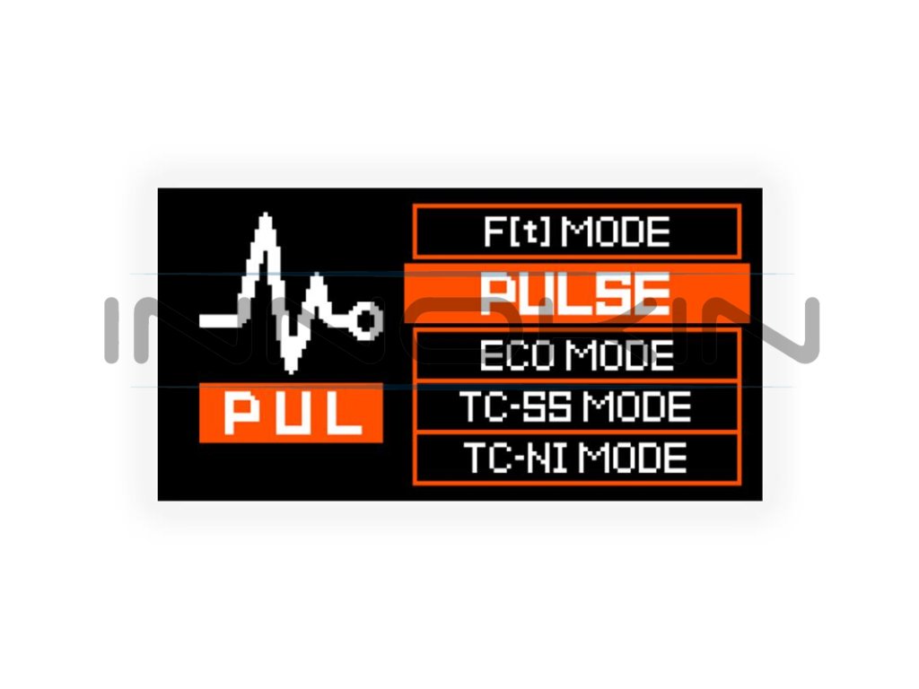 Výstupní režimy: F(t), PULSE, ECO, TC (SS, Ni, Ti), SMART