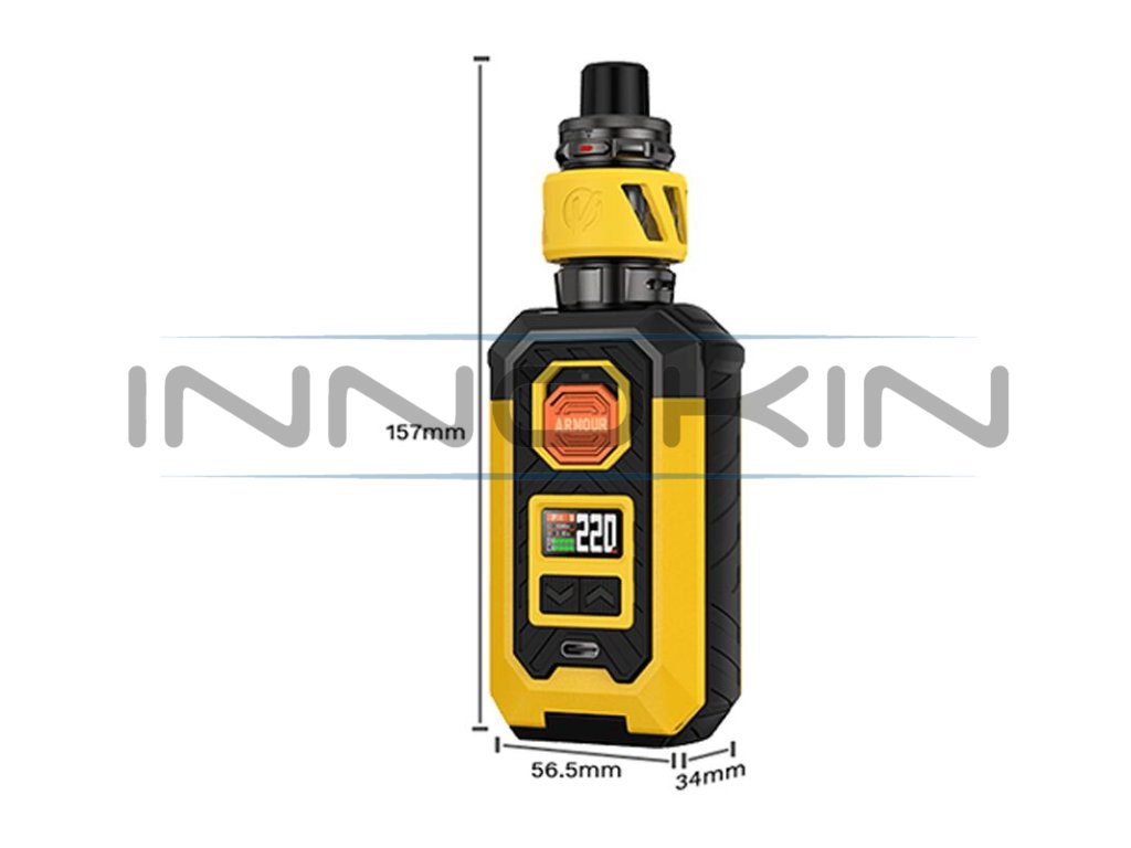 Vaporesso Armour Max je robustní elektronický grip s bytelnou konstrukcí a solidními rozměry těla. V případě, že vám nevyhovují kompaktní a kapesní pod systémy, rozhodně si přijdete na své. Celkové rozměry celého kitu činí 157 x 56.5 x 34 mm. Díky TPU materiálu se mod příjemně drží v ruce a tradiční box mod konstrukce zaručí pohodové každodenní používání.