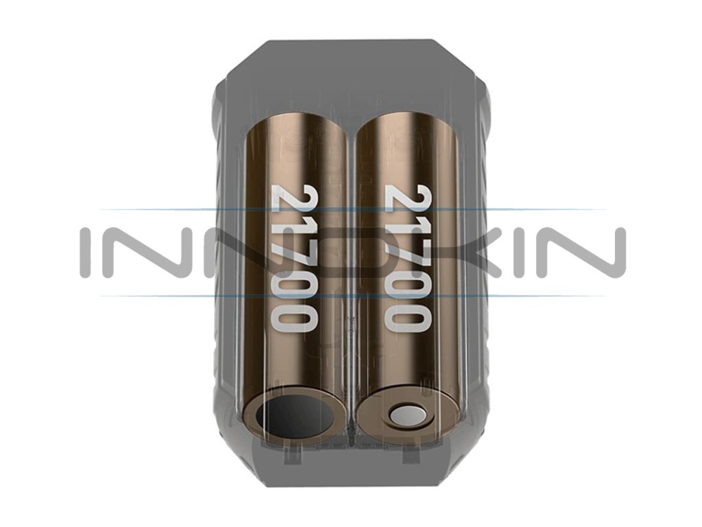 Ve spodní části modu se nachází uzávěr slotu pro baterie. Do tohoto slotu můžete umístit dvě baterie typu 21700 pro maximalizaci potenciálu modu, nebo případně dvě baterie typu 18650 s přiloženou redukcí v balení. Mod si tak můžete osadit svými oblíbenými bateriemi a využívat ho přesně podle svých představ. Samozřejmostí je potom také podpora rychlého nabíjení baterií přímo uvnitř modu, zařízení disponuje slotem USB-C pro nabíjení proudem až 2A.