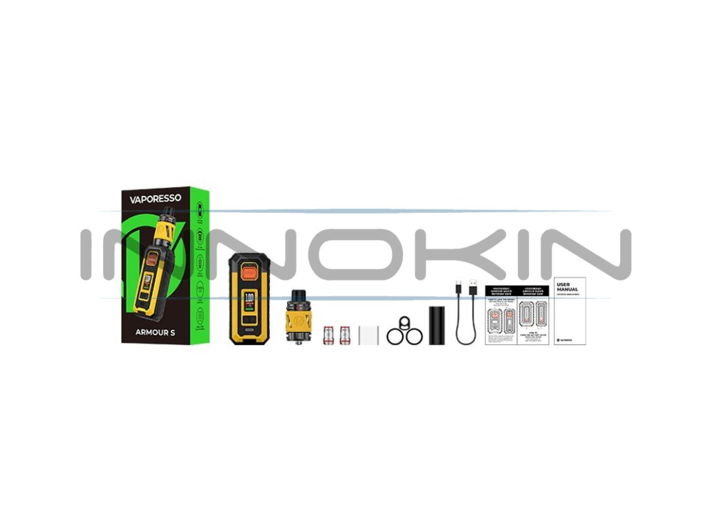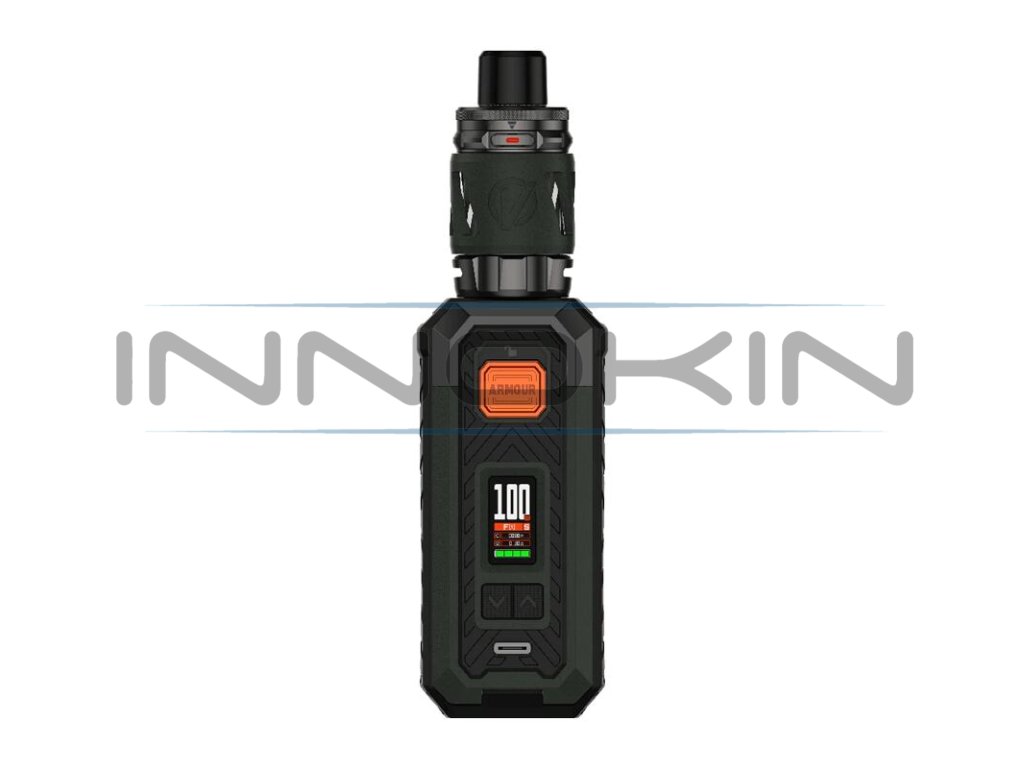 Světoznámý výrobce Vaporesso se tentokrát zaměřil na milovníky velkých gripů a outdoorové odolné estetiky. Přináší tak hned dva modely s názvy Vaporesso Armour S a Armour Max. Grip Vaporesso Armour S Kit je ergonomicky vyladěné robustní zařízení, jehož hlavní předností je zejména netradičně zpracovaná konstrukce a prvotřídní elektronika v těle, která umožňuje používání gripu s celou řadou výstupních režimů. Robustní konstrukce zařízení je vyrobena z mimořádně odolného TPU materiálu, který zesiluje celkovou odolnost modu a posouvá ji daleko nad běžné kovové a plastové gripy. Ve spodní části modu Armour S se nachází slot pro vložení jedné baterie typu 21700, nebo 18650 s pomocí přiložené redukce. Mod Armour v jednobaterkové verzi nabídne strhující výstupní výkon, jenž dosahuje 100W. Baterii si můžete pohodlně dobíjet přímo v modu prostřednictvím portu USB-C s podporou 2A nabíjení.