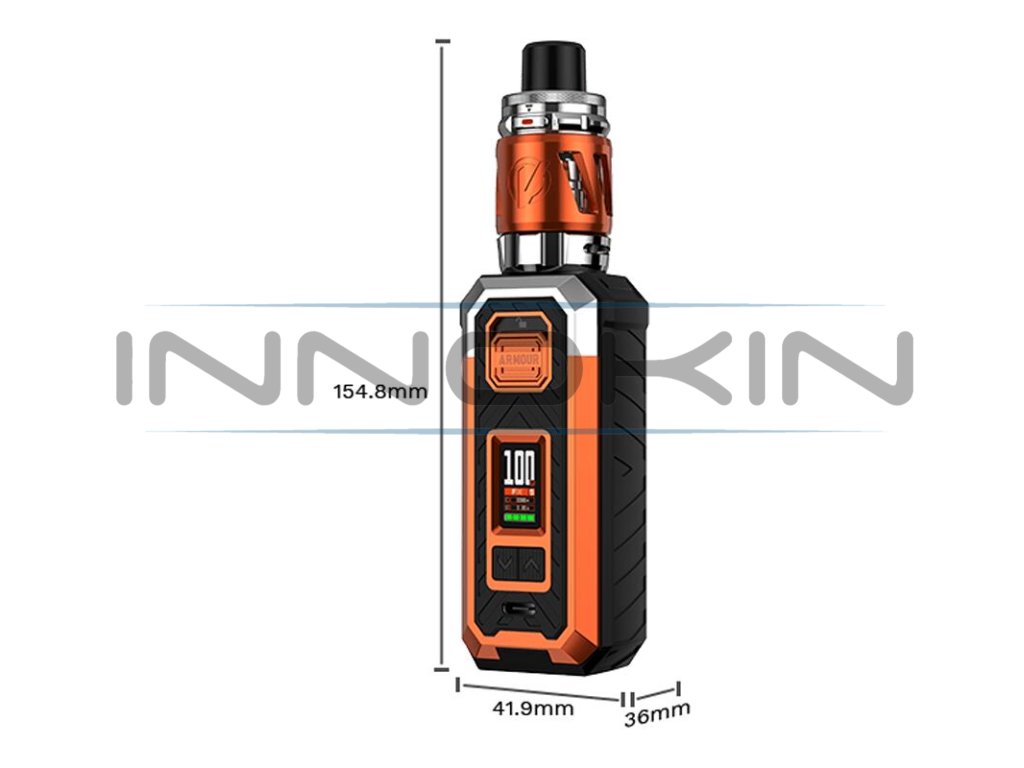 Dominantou zařízení je potom přední ovládací panel s unikátním Uni-Lock spínacím tlačítkem, jehož posouváním ho můžete jednoduše zajistit před nechtěným sepnutím při přenášení, nebo ho opětovně odemknout a žhavit. Na panelu se nachází také kompaktní displej se všemi důležitými parametry a přehledným rozhraním. Mod pracuje s řadou výstupních režimů, za zmínku stojí například úsporný ECO režim, nebo teplotní režimy pro niklové, titanové a nerezové spirálky. Nastavení je nesmírně snadné a rychlé. Ve vrchní části je mod opatřen závitem typu 510, v základní sadě najdete oblíbený DL atomizér Vaporesso iTank 2 s ochranným tělem skla a obrovským objemem 5 ml. Atomizér perfektně doplňuje celkový vzhled zařízení a zároveň dodá také skvělé výsledky při vapování. Jeho součástí jsou také dvě žhavící hlavy ze série GTi Mesh s odpory 0,2 ohm a 0,4 ohm. Mody ze série Vaporesso Armour jsou odolné soupravy pro náročné a pro všechny, kdo milují robustní a bytelná zařízení se solidními rozměry a kvalitní konstrukcí.