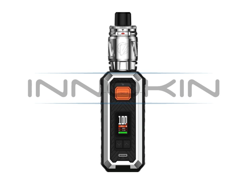 Dominantou zařízení je potom přední ovládací panel s unikátním Uni-Lock spínacím tlačítkem, jehož posouváním ho můžete jednoduše zajistit před nechtěným sepnutím při přenášení, nebo ho opětovně odemknout a žhavit. Na panelu se nachází také kompaktní displej se všemi důležitými parametry a přehledným rozhraním. Mod pracuje s řadou výstupních režimů, za zmínku stojí například úsporný ECO režim, nebo teplotní režimy pro niklové, titanové a nerezové spirálky. Nastavení je nesmírně snadné a rychlé. Ve vrchní části je mod opatřen závitem typu 510, v základní sadě najdete oblíbený DL atomizér Vaporesso iTank 2 s ochranným tělem skla a obrovským objemem 5 ml. Atomizér perfektně doplňuje celkový vzhled zařízení a zároveň dodá také skvělé výsledky při vapování. Jeho součástí jsou také dvě žhavící hlavy ze série GTi Mesh s odpory 0,2 ohm a 0,4 ohm. Mody ze série Vaporesso Armour jsou odolné soupravy pro náročné a pro všechny, kdo milují robustní a bytelná zařízení se solidními rozměry a kvalitní konstrukcí.