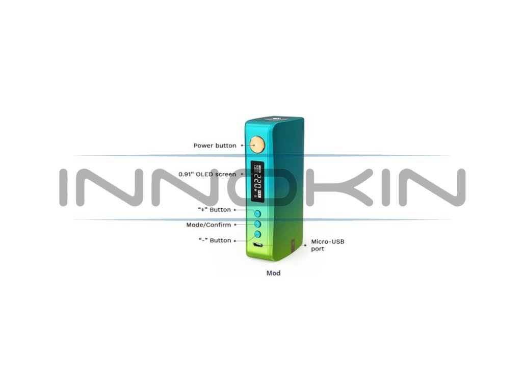 Odklopením bočního krytu objevíte slot pro dvě baterie typu 18650. Díky pohonu na dvě baterie si mod poradí s mnohahodinovou výdrží bez nutnosti dalšího dobíjení. Jestliže bude nutné baterie dobít, jednoduše připojíte micro USB kabel z balení a dobijete je přímo v modu proudem až 2,5 A. Baterie 18650 nejsou součástí základního balení a je nutné dokoupit je samostatně.