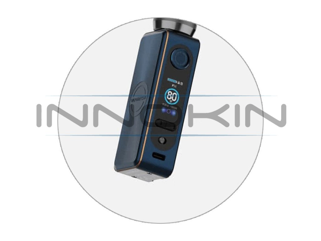 Horní část modu je vybavena tradičním závitem typu 510. Na mod si tak můžete bez problému nasadit jakýkoliv svůj oblíbený atomizér se stejným typem závitu. Pro zachování optimální estetiky modu doporučujeme užívat atomizéry s průměrem základny do cca 25 mm. Mod si poradí jak s tradičními MTL atomizéry, tak také s výkonními DL atomizéry.