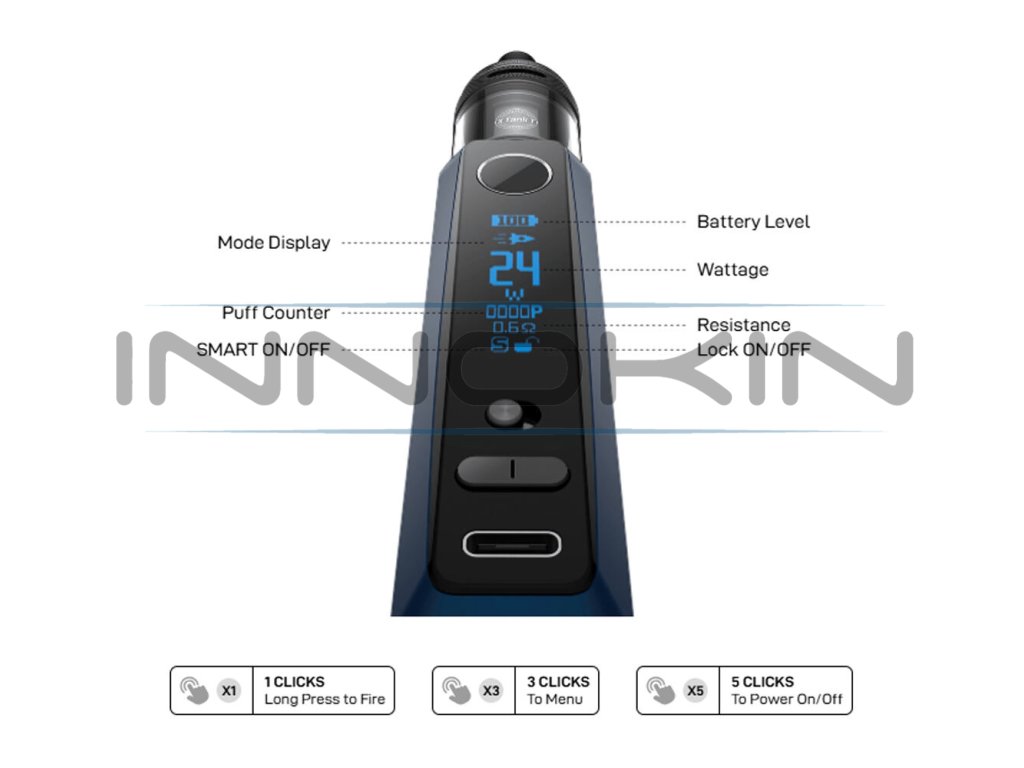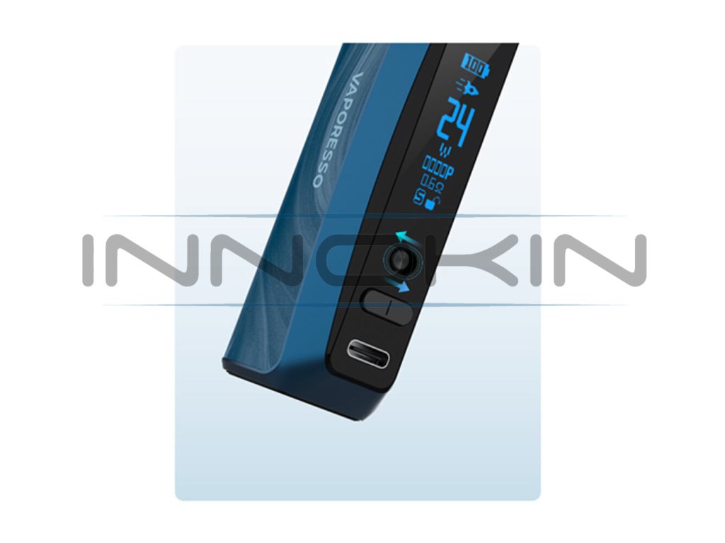 OLED displej u e-cigarety GTX One Pro je o 26% větší než u předchozího modelu a přináší přehlednější rozhraní, jež vyzdvihne ty nejdůležitější parametry a funkce potřebné během vapování. Displej je navíc krásně čitelný a v rozhraní a nastavení se pohybujete prostřednictvím spínacího tlačítka a regulačních tlačítek, vše je rychlé, pohodlné a s ovládáním tak nebude mít problém naprosto žádný vaper.