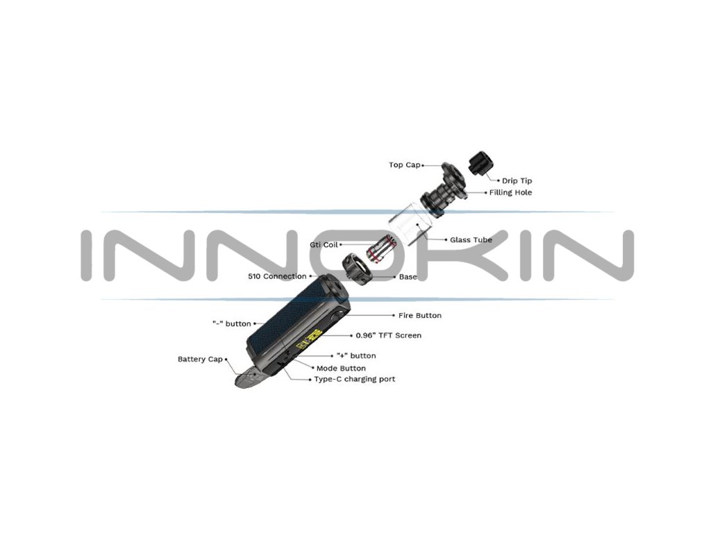 Tělo modu je poháněno oblíbeným a kvalitním čipem AXON, který se postará o perfektní výsledky při vapování. Díky čipu se můžete těšit hned na několik výstupních režimů. Nesmí chybět inteligentní režim Smart VM, který doporučí výkon dle připojeného tělíska. K dispozici je také režim F(t) Mode, který se postará o co nejlepší chuťové podání, režim Pulse pro dodání konstantního výkonu během potahu, nebo DIY režimy, jako jsou VV a Bypass. Čip rovněž umožňuje dobíjení baterie přímo v modu díky portu USB-C proudem až 2A. Nový clearomizér iTank nabídne objem 5 ml. Je kompatibilní s tělísky GTi Mesh. V základním balení na vás čekají tělíska s odpory 0,2 ohm a 0,4 ohm pro přímé potahování do plic. Clearomizér nabídne jednoduchou konstrukci pro co nejsnazší údržbu. Nesmí chybět jednoduchý systém vrchního plnění, nebo spodní regulace airflow. Vaporesso Target 100 Kit je ve všech směrech vynikající sada, kterou si snadno oblíbí jak pokročilí uživatelé, tak také začátečníci.