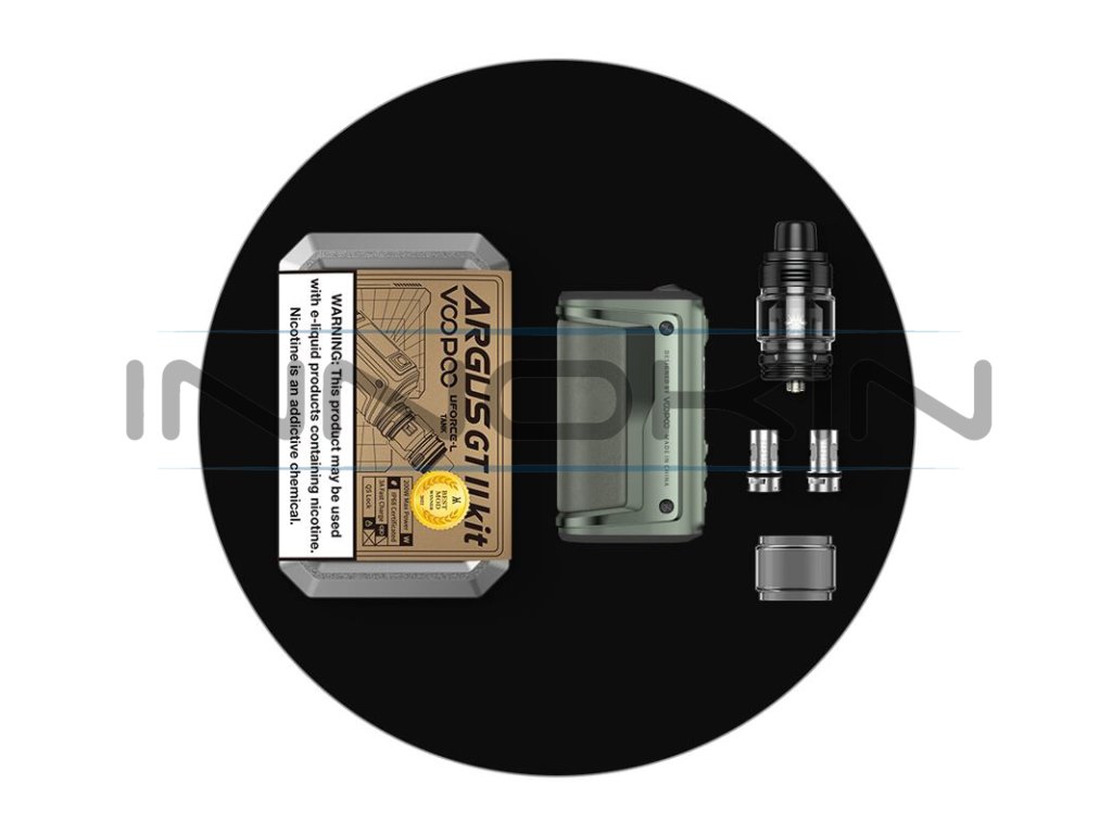 Druhá generace populárního modu VooPoo Argus GT s jednoduchým označením Argus GT II nabídne řadu vylepšení pro ještě snazší nastavení a zároveň mnohem širší možnosti využití díky podpoře TC režimů a novému režimu TURBO. Těšit se můžete také na přepracovaný design a upgradovanou verzi čipu GENE.TT, který podporuje výstupní výkon až do 200 W. Kovové tělo ze zinkové slitiny je opatřeno koženým panelem a certifikací IP68, mod je proto nesmírně odolný vůči vnějším vlivům, robustní a stylový. Rozměry samotného modu činí 90 x 54 x 29 mm. Do jeho těla je možné nainstalovat až dvě baterie typu 18650 pro zisk maximálního výstupního výkonu a rychlého náběhu žhavení. Baterie bude možné dobíjet přímo v modu díky podpoře rychlého standardu nabíjení skrz USB-C port proudem až 3 A. V jádru modu se nachází integrovaný čip GENE.TT 2.0 pro perfektní výsledky při žhavení, snadné uživatelské nastavení a velký výběr výstupních režimů.