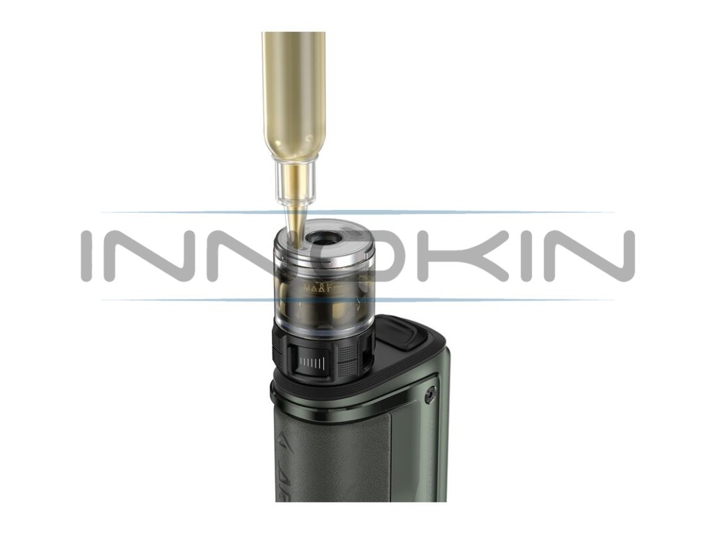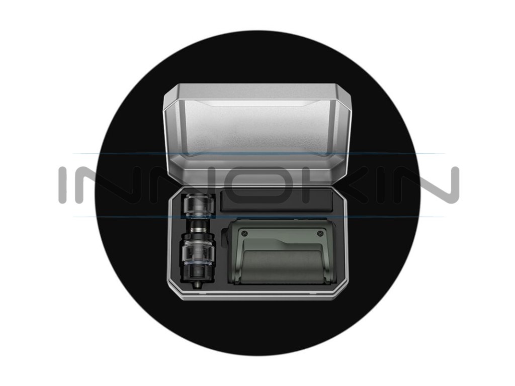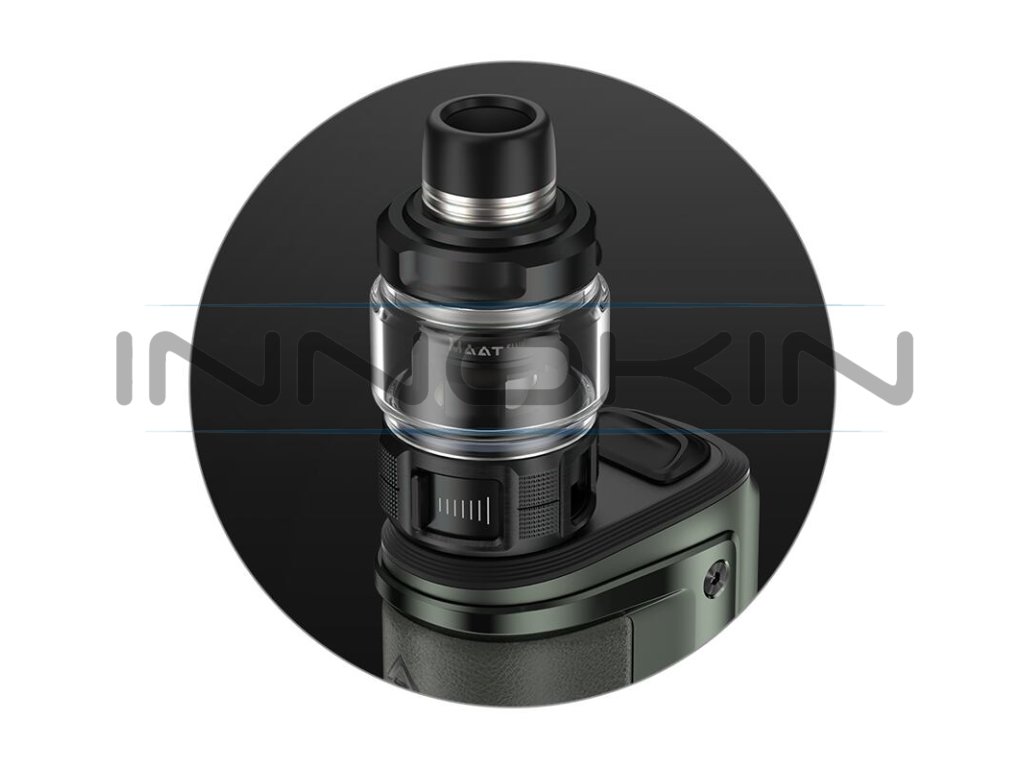 V kompletní soupravě na vás čeká také zbrusu nový clearomizér VooPoo Maat New Tank. Jedná se o clearomizér pro přímé potahování do plic s obrovským objemem 6,5 ml, praktickým vrchním plněním a inovativním spodním systémem přísunu vzduchu. Clearomizér nabídne jednoduchou obsluhu a efektivně dokresluje celkový design samotného modu.