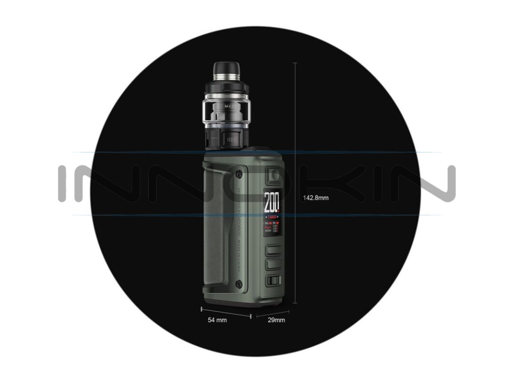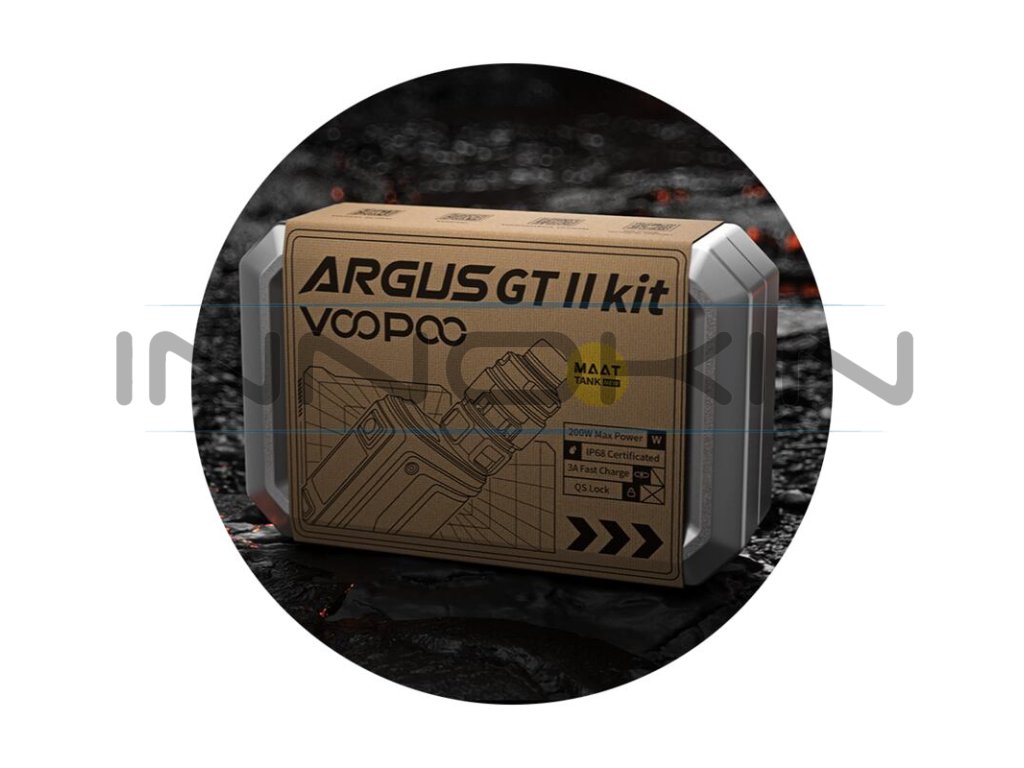 Druhá generace populárního modu VooPoo Argus GT s jednoduchým označením Argus GT II nabídne řadu vylepšení pro ještě snazší nastavení a zároveň mnohem širší možnosti využití díky podpoře TC režimů a novému režimu TURBO. Těšit se můžete také na přepracovaný design a upgradovanou verzi čipu GENE.TT, který podporuje výstupní výkon až do 200 W. Kovové tělo ze zinkové slitiny je opatřeno koženým panelem a certifikací IP68, mod je proto nesmírně odolný vůči vnějším vlivům, robustní a stylový. Rozměry samotného modu činí 90 x 54 x 29 mm. Do jeho těla je možné nainstalovat až dvě baterie typu 18650 pro zisk maximálního výstupního výkonu a rychlého náběhu žhavení. Baterie bude možné dobíjet přímo v modu díky podpoře rychlého standardu nabíjení skrz USB-C port proudem až 3 A. V jádru modu se nachází integrovaný čip GENE.TT 2.0 pro perfektní výsledky při žhavení, snadné uživatelské nastavení a velký výběr výstupních režimů.