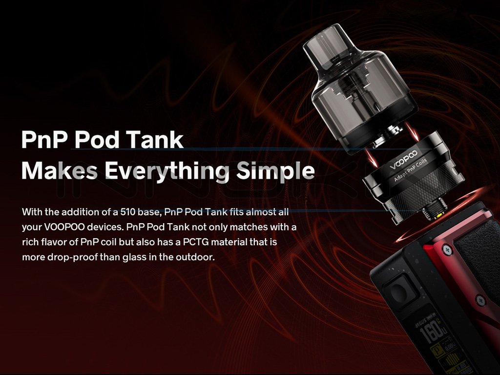 VOOPOO Argus GT - 160W - Pod Grip Kit s PnP Tank (Black & Red)