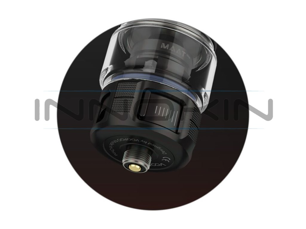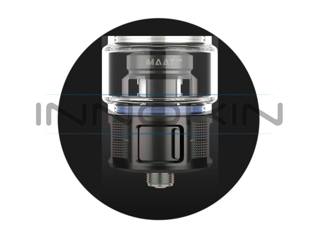 Součástí kompletního balení je oblíbený clearomizér Maat New Tank. Jedná se o přepracovanou a upgradovanou verzi populárního Maat Tanku pro přímé potahování do plic. Clearomizér nabídne obrovský objem 6,5 ml, inovativní vrchní plnění a unikátní systém spodního airflow. Clearomizér se postará o produkci obrovského množství husté a chutné páry a nabídne zcela mimořádný chuťový požitek.