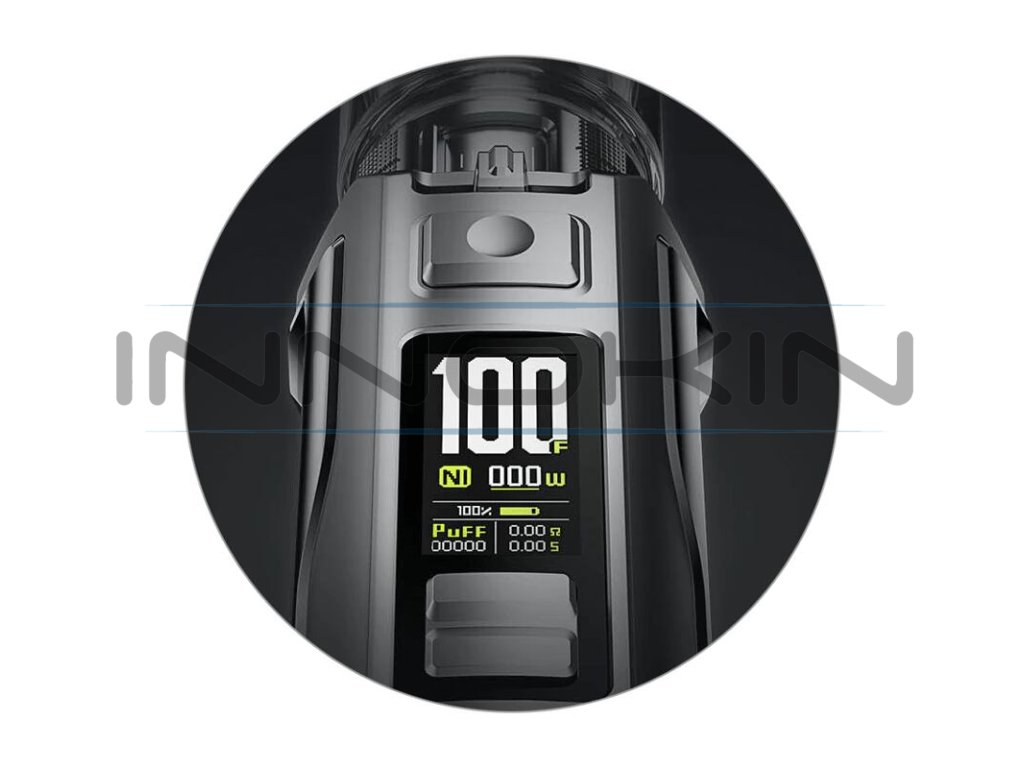 O bezproblémový chod celého modu Argus MT se stará čip GENE TT 2.0. Díky tomuto čipu budete moci využívat jeden ze čtyř praktických režimů a zároveň se můžete těšit na celou řadu bezpečnostních prvků pro hladký provoz. Všechny parametry a hodnoty si nastavíte rychle a snadno na displeji v přední části. Pro ovládání poslouží dvě regulační tlačítka a velké spínací tlačítko. Mod nabídne pokročilý režim SMART, který efektivně měří odpor tělíska a nastaví potřebný výkon při žhavení za vás. V režimu RBA si budete moci libovolně upravovat výkon v rozmezí 5 - 100 W. Milovníci teplotních režimů se mohou těšit na TC (Ni, SS, Ti) a příznivci prudkého náběhu žhavení se mohou těšit na režim TURBO, který zesílí nastavený výkon pro první vteřinu potahu o 25%. Na předním panelu přímo u displeje se potom nachází manuální zamykací tlačítko pro snadné a rychlé uzamčení modu v případě přenášení. V upgradovaném balení se nachází atomizér VooPoo UFORCE-L Tank. Ten disponuje objemem tanku 5,5 ml. Clearomizér láká na pohodlné vrchní plnění a vrchní systém airflow, stejně jako na podporu tělísek z platformy PnP. V základním balení se potom nachází dvě tělíska PnP s označením PnP-TW20 (0,2 ohm) a PnP-TW30 (0,3 ohm) pro přímé potahování do plic. VooPoo Argus MT Kit elegantně doplňuje celou sérii zařízení Argus a přináší zase něco nového.