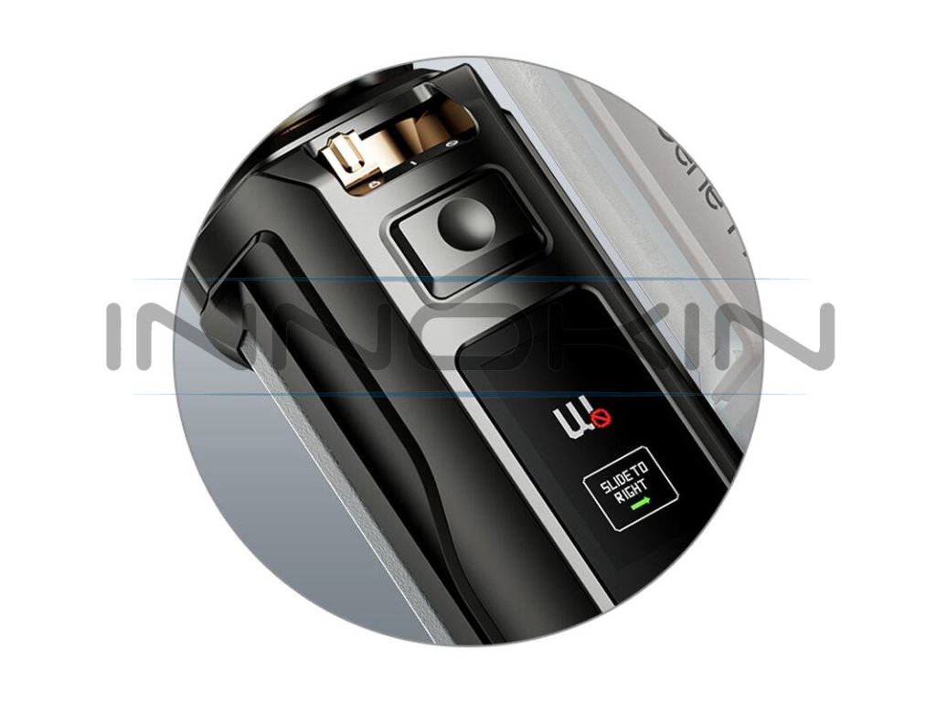 Nad spínacím tlačítkem modu Argus XT se nachází praktický manuální zámek, pomocí kterého si můžete zvolit jednu ze tří pozic. První nabídne kompletní odemčení modu jak pro nastavení, tak pro žhavení. Druhá pozice uzamkne regulační i spínací tlačítka a třetí pozice uzamkne regulační tlačítka, aby nedošlo k nechtěnému přenastavení výkonu, či teploty, pokud mod přenášíte v kapse. Jednoduchým pohybem tak můžete mít svůj mod v neustálém bezpečí proti nechtěnému sepnutí.