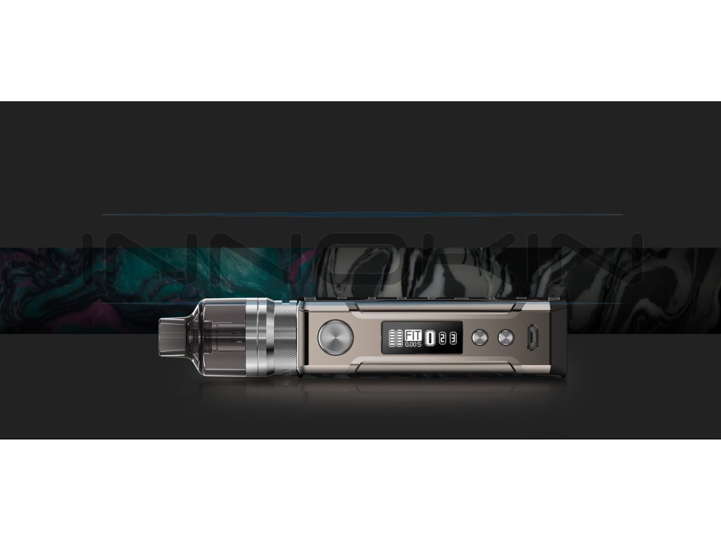 Na tenčí boční straně nalezneme přehledný OLED displej, na kterém nalezneme všechny potřebné údaje, a zároveň možnost nastavení samotných parametrů pro vapování. U tak propracovaného Gripu samozřejmě nechybí spousta režimů, jakými jsou například tolik populární teplotní režimy (TC), a to jak pro niklové, titanové, tak samozřejmě i nerezové spirálky. Jako pomyslnou třešinkou na dortu je speciální režim FIT, díky kterému dosáhnete vynikajícího podání chuti použitého e-liquidu, úsporu kapacity baterie a kontrolu náplně v tanku. Samozřejmostí zobrazení displeje jsou pak ukazatele aktuálního stavu baterií, aktuálně nastavený výkon v režimu VW, aktuálně použitý odpor žhavící hlavy, případně teplota v režimu TC.