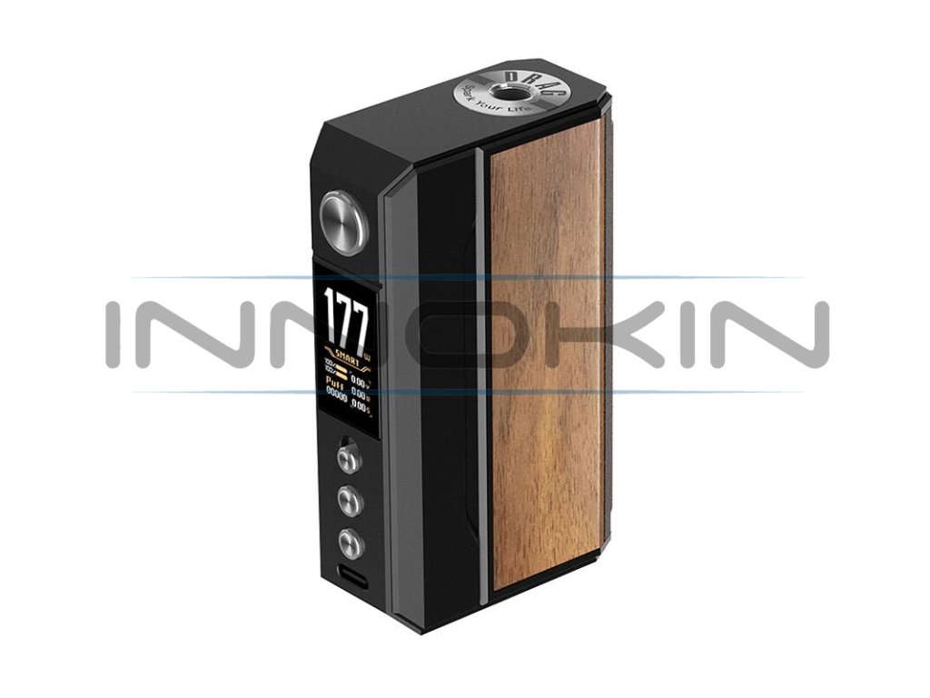 VooPoo Drag 4 Mod je již čtvrtou generací vlajkové lodě Drag, série pokročilých gripů výrobce VooPoo. Na pomyslný vrchol nabídky výrobce ho potom řadí celá řada prvků, mezi nejvýznamnějšími lze jmenovat hlavně kvalitní čip GENE.TT 2.0, podporu extrémně rychlého nabíjení 3A, nebo široký výběr režimů a možnost konfigurace manuálního QS zámku. Při prvním seznámení s gripem Drag 4 vás však zaujme zejména jeho design. Tradiční box mod tělo s rozměry 89 x 52.4 x 25.4 mm je vyrobeno z kombinace zinkové slitiny a kůže na zadním panelu. Boční panely potom zdobí tři rozdílné materiály dle barevného zpracování - resin, palisandrové dřevo, nebo ořechové dřevo. Tělo modu s překrásným a luxusním designem ukrývá slot pro vložení dvou baterií typu 18650, které se postarají o extrémní výkon, jenž dosahuje až 177 W. Baterie můžete pohodlně dobíjet přímo v modu prostřednictvím 5V / 3A USB-C portu v přední části.