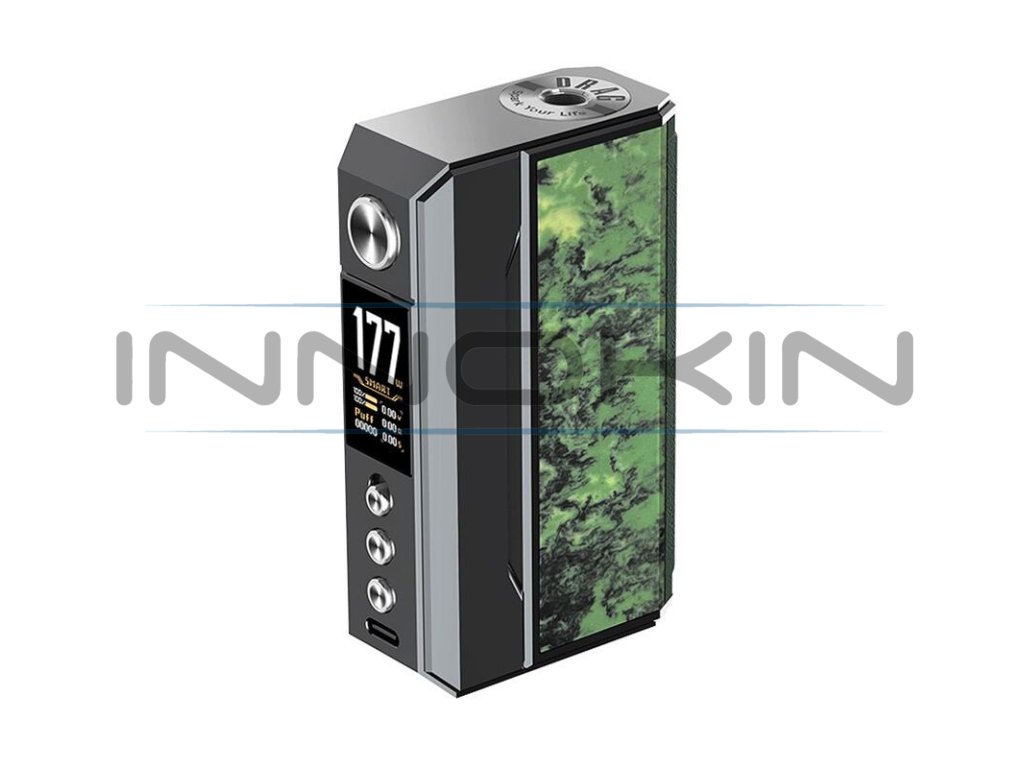 VooPoo Drag 4 Mod je již čtvrtou generací vlajkové lodě Drag, série pokročilých gripů výrobce VooPoo. Na pomyslný vrchol nabídky výrobce ho potom řadí celá řada prvků, mezi nejvýznamnějšími lze jmenovat hlavně kvalitní čip GENE.TT 2.0, podporu extrémně rychlého nabíjení 3A, nebo široký výběr režimů a možnost konfigurace manuálního QS zámku. Při prvním seznámení s gripem Drag 4 vás však zaujme zejména jeho design. Tradiční box mod tělo s rozměry 89 x 52.4 x 25.4 mm je vyrobeno z kombinace zinkové slitiny a kůže na zadním panelu. Boční panely potom zdobí tři rozdílné materiály dle barevného zpracování - resin, palisandrové dřevo, nebo ořechové dřevo. Tělo modu s překrásným a luxusním designem ukrývá slot pro vložení dvou baterií typu 18650, které se postarají o extrémní výkon, jenž dosahuje až 177 W. Baterie můžete pohodlně dobíjet přímo v modu prostřednictvím 5V / 3A USB-C portu v přední části.