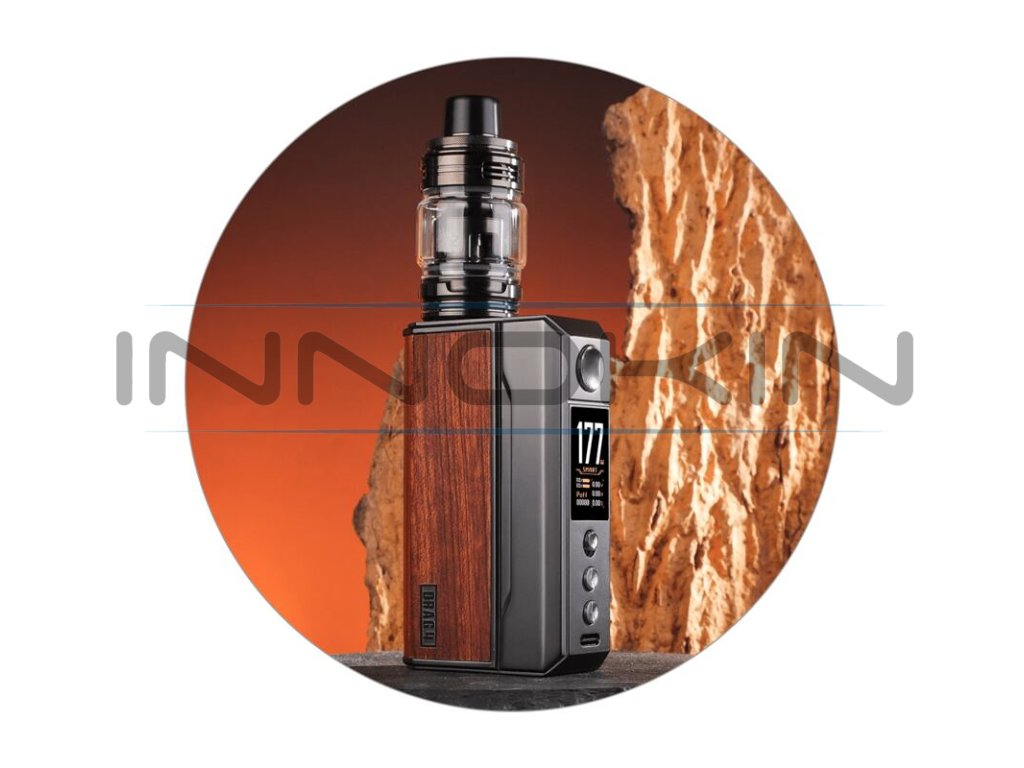 VooPoo Drag 4 Mod je již čtvrtou generací vlajkové lodě Drag, série pokročilých gripů výrobce VooPoo. Na pomyslný vrchol nabídky výrobce ho potom řadí celá řada prvků, mezi nejvýznamnějšími lze jmenovat hlavně kvalitní čip GENE.TT 2.0, podporu extrémně rychlého nabíjení 3A, nebo široký výběr režimů a možnost konfigurace manuálního QS zámku. Při prvním seznámení s gripem Drag 4 vás však zaujme zejména jeho design. Tradiční box mod tělo s rozměry 89 x 52.4 x 25.4 mm je vyrobeno z kombinace zinkové slitiny a kůže na zadním panelu. Boční panely potom zdobí tři rozdílné materiály dle barevného zpracování - resin, palisandrové dřevo, nebo ořechové dřevo. Tělo modu s překrásným a luxusním designem ukrývá slot pro vložení dvou baterií typu 18650, které se postarají o extrémní výkon, jenž dosahuje až 177 W. Baterie můžete pohodlně dobíjet přímo v modu prostřednictvím 5V / 3A USB-C portu v přední části.