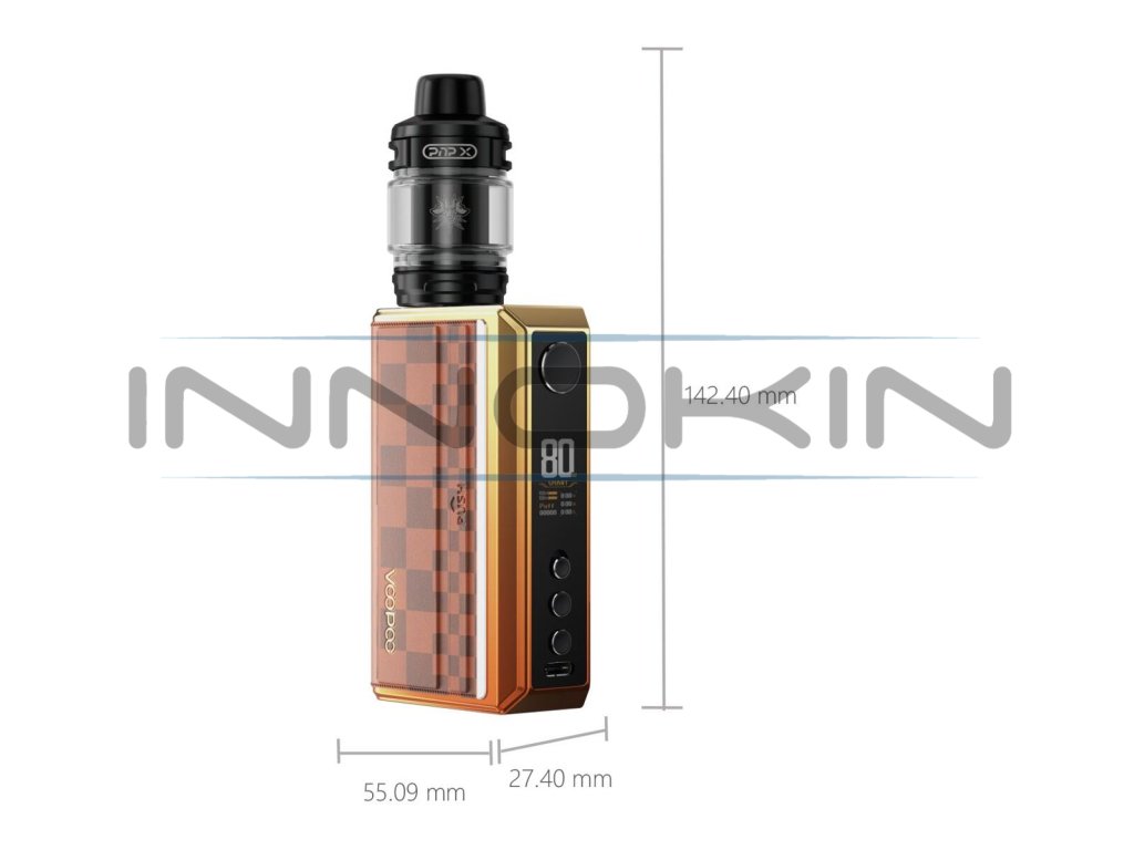 VooPoo Drag 5 je již pátou generací nesmírně populárního box modu Drag. Pátá generace přináší nejnovější inovace ve vapingu, luxusní designové zpracování a strhující výstupní výkon s maximální hodnotou 177W. V kompletním setu potom obsahuje také upgradovaný clearomizér UFORCE-X Tank s podporou platformy PnP-X, obrovským objemem, inovativním horním plněním a horním systémem airflow. Vylepšené pokročilé technologie modu a vylepšený design celého zařízení pozvednou zážitek z vapování do nových výšin a připraví vám neopakovatelný požitek při každodenním používání.