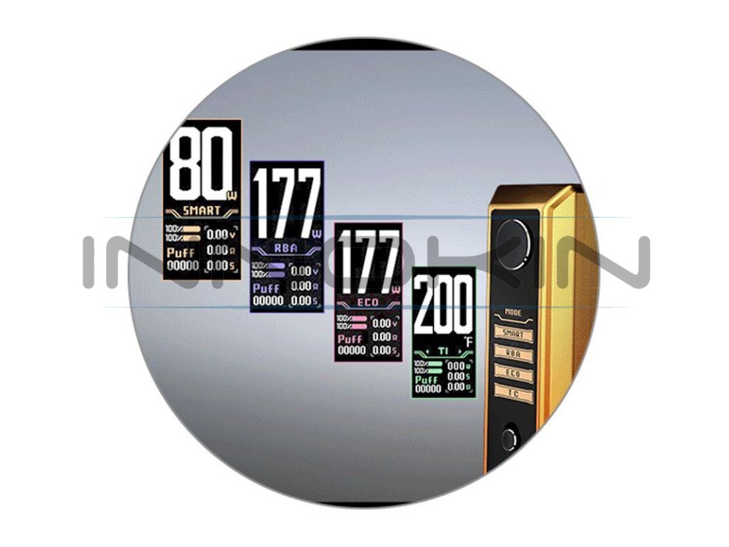 Mod Drag 5 umožňuje výběr hned ze čtyř výstupních režimů, které dokáží uspokojit požadavky pokročilých uživatelů i naprostých začátečníků. Mod je vybaven režimem Smart, který automaticky doporučí vhodný výkon na základě odporu připojeného atomizéru, režimem RBA pro vlastní uživatelské nastavení výstupního výkonu, režimem ECO pro větší úsporu baterií během používání a režimem TC pro pokročilé uživatele, kteří používají mod v teplotních režimech pro specifické materiály spirálek.
