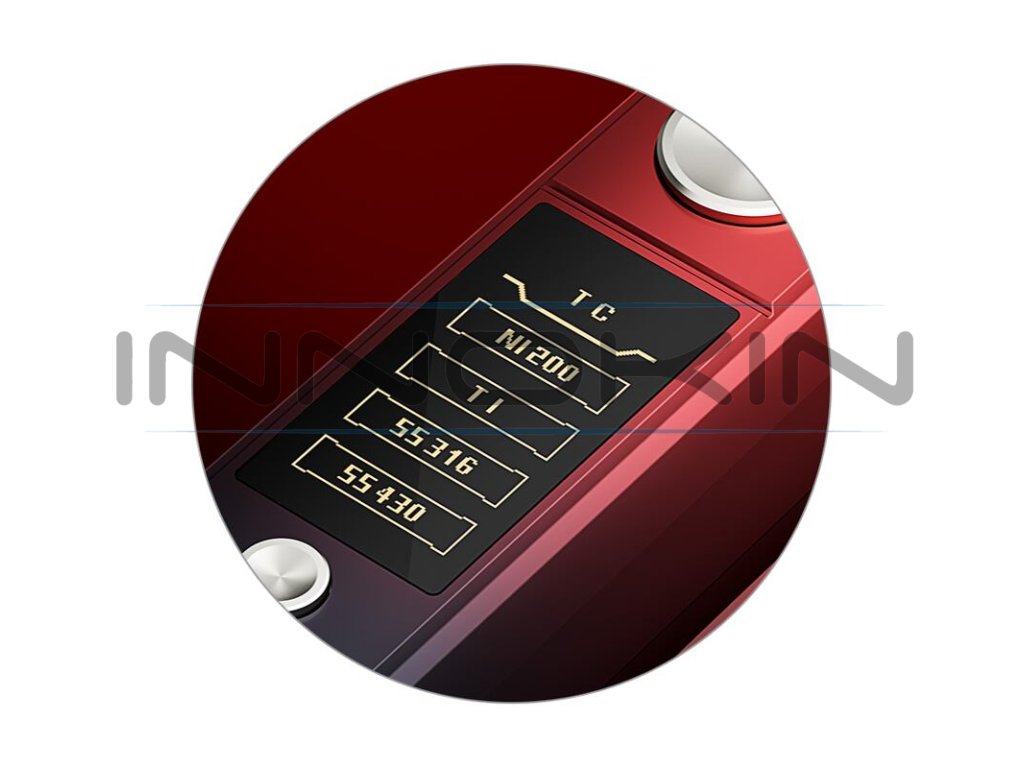 Oblíbené teplotní režimy jsou zpět. Mimo standardní režim výkonu si tak můžete na zařízení vyzkoušet jeden z teplotních režimů pro niklové (Ni200), titanové (Ti) a nerezové (SS316, SS430) spirálky. Režimy využijí zejména pokročilí uživatelé s vlastním motacím atomizérem. Nabídka výstupních režimů je nesmírně bohatá a umožňuje širokou variabilitu uživatelského nastavení.