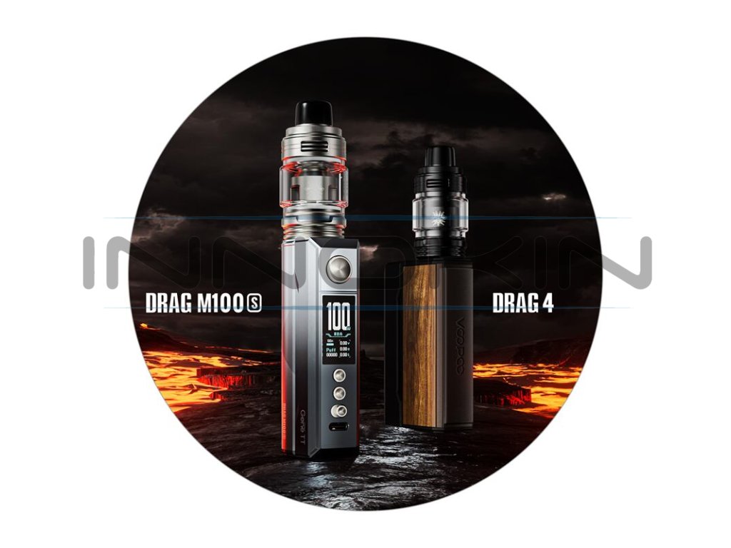 Po představení dvoubaterkového modu Drag 4 představuje výrobce VooPoo také jeho menšího sourozence. Grip VooPoo Drag M100S nabídne jednobaterkový provoz, bohatou nabídku režimů, vysoký výstupní výkon a další oblíbené prvky, na které jste mohli narazit již u modelu Drag 4. V prvé řadě však láká na esteticky dokonalý design. Celé tělo modu je vyrobeno z kvalitní zinkové slitiny, přičemž nabídne matnou povrchovou úpravu pro minimalizaci vzniku otisků prstů na těle. Dvě barevné varianty tohoto modelu (Antique Brass & Padauk, Black & Darkwood) potom nabídnou také dřevěné doplňky pro nekompromisně odladěný design. V jádru modu se nachází slot pro vložení jedné baterie typu 21700, nebo 18650 s adaptérem. Díky pohonu na jednu baterii si mod poradí s výstupním výkonem až 100 W, výkon lze potom libovolně regulovat v rozpětí 5 - 100 W ve standardním režimu.