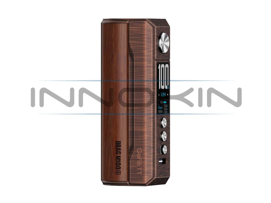Po představení dvoubaterkového modu Drag 4 představuje výrobce VooPoo také jeho menšího sourozence. Grip VooPoo Drag M100S nabídne jednobaterkový provoz, bohatou nabídku režimů, vysoký výstupní výkon a další oblíbené prvky, na které jste mohli narazit již u modelu Drag 4. V prvé řadě však láká na esteticky dokonalý design. Celé tělo modu je vyrobeno z kvalitní zinkové slitiny, přičemž nabídne matnou povrchovou úpravu pro minimalizaci vzniku otisků prstů na těle. Dvě barevné varianty tohoto modelu (Antique Brass & Padauk, Black & Darkwood) potom nabídnou také dřevěné doplňky pro nekompromisně odladěný design. V jádru modu se nachází slot pro vložení jedné baterie typu 21700, nebo 18650 s adaptérem.