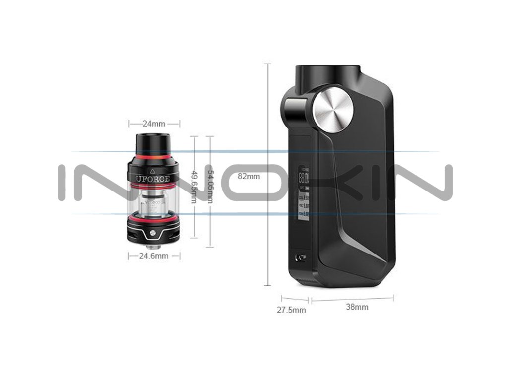 Parametry produktu: Mod VooPoo Mojo: Rozměry: 82 x 27,5 x 38 mmVýstupní výkon: 5 - 88 W Baterie: integrovaná 2600 mAh Dostupné režimy: VW, TC (Ni, Ti, SS)Podporovaný odpor: VW režim: 0,05 - 3,0 ohm TC režim: 0,05 - 1,0 ohmNabíjení: externě nebo USB Nastavení teploty 100 - 315 °C (200 - 600 °F) Výstupní napětí: 0 - 8,5 V Materiál: slitina zinku Závit: 510 Clearomizér UFORCE: Délka: 54 mm Průmer: 24,6 mm Objem: 3,5 ml Materiál: nerezová ocel + borosilikátové sklo Závit: 510 Tento výrobek není určen pro náplně obsahující nikotin. |