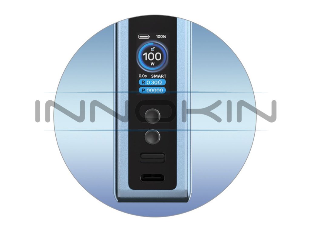 Tělo modu ukrývá slot pro vlastní externí baterii typu 18650. Po vložení vlastní baterie můžete začít naplno využívat všechny funkce modu. Největší předností je potom podpora obrovského výstupního výkonu až 100W s plnohodnotnou možností regulace, velice snadno a rychle si tak upravíte výkon podle potřeby a můžete si vychutnávat svůj oblíbený styl potahu.