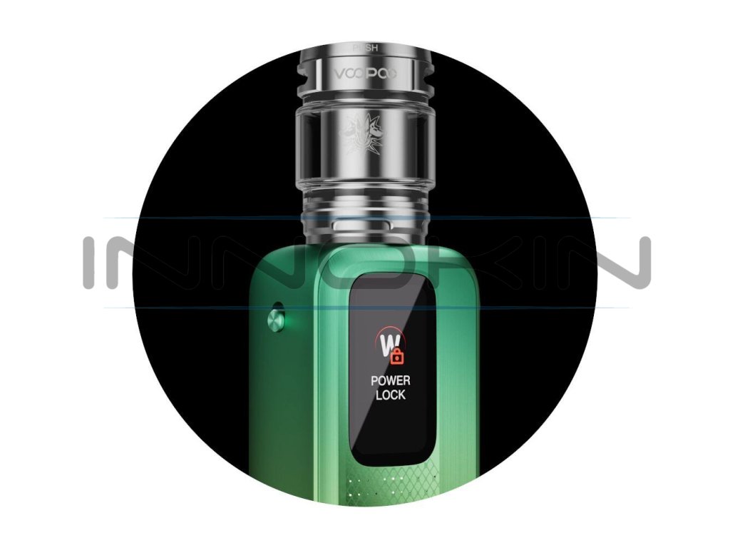 Namísto otravných kombinací pro zamykání a odemykání e-cigarety výrobce VooPoo zvolil mnohem praktičtější variantu v podobě bočního posuvného tlačítka, které je dokonce uživatelsky konfigurovatelné přes menu nastavení. K dispozici jsou dvě volby - Lock Switch a Power Lock. První z nich slouží pro deaktivaci otočného ovladače a zároveň tlačítka spouštění žhavení, čímž dojde ke kompletnímu uzamknutí zařízení. Druhá volba deaktivuje pouze otočný ovladač, takže je stále možné aktivovat žhavení a vapovat, ale nehrozí nežádoucí změna nastavení.