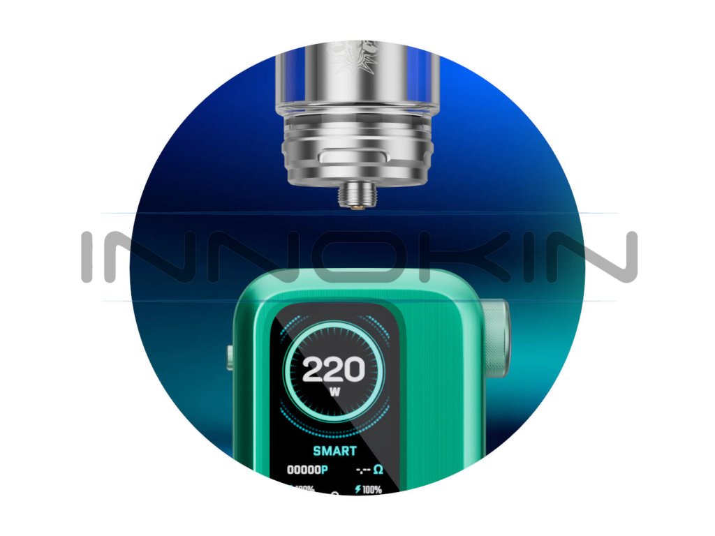 Upgradovaná verze integrovaného čipsetu umožňuje výběr hned ze tří režimů vapování. V režimu Smart s automatickou detekcí odporu žhavící hlavy elektronika sama zvolí optimální nastavení a omezí maximální výkon pro daný typ tělíska. Ovládání modu je tak dostatečně jednoduché i pro méně zkušené vapery. RBA režim nabízí zcela variabilní nastavení výkonu od 5 do 220 W po 1 W, díky čemuž můžete experimentovat s výslednou chutí a množstvím páry. Poslední režim TC-TCR je určen pro vyznavače DIY vapingu a umožňuje regulaci podle teploty se čtyřmi přednastavenými typy vodičů - SS316, SS430, Ni200 a Titanium.