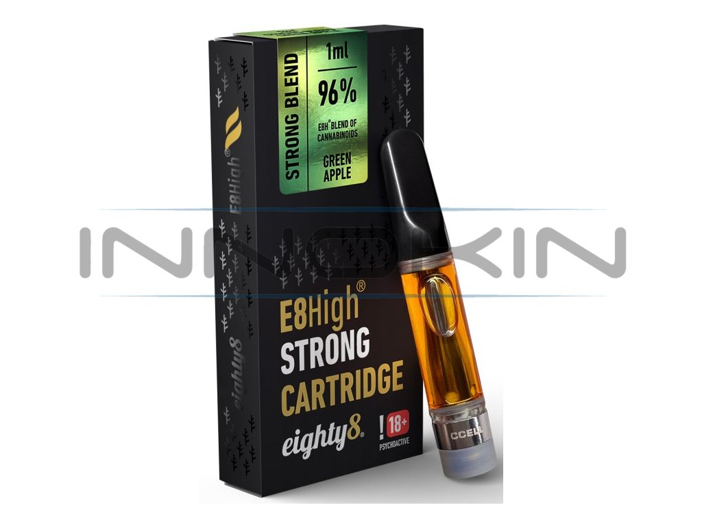 Zelené jablko.. Přednaplněná cartridge s 510 závitem o objemu 1ml od českého výrobce Eighty8. Unikátní směs plně legálních a hlavně bezpečných kanabinoidů sestavena pro maximální HIGH efekt, která je legální napříč celou Evropou. Od dob, co bylo zakázáno HHC, musíme říct, že E8High je blend kanabinoidů, na který všichni čekali.