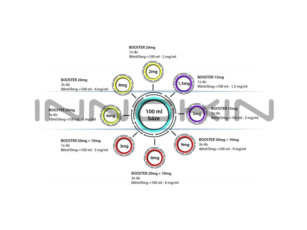 10ml Fifty Booster s koncentrací nikotinu 10mg. Určeno pro obohacení bez nikotinové báze (např. 100ml bez nikotinové báze tím získá požadovanou koncentraci nikotinu)