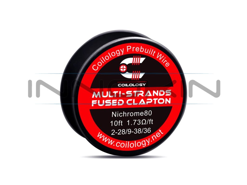 Coilology Multi-Strands Fused Clapton Ni80 je vysoce kvalitní odporový drát renomovaného výrobce Coilology. Drát je vhodný pro výrobu spirálek určených k DL vapingu. Drát je vyrobený z nichromu, přičemž jeho tvoří hned několik drátů v konfiguraci 2-28/9-38, po stranách jádra se tedy nachází dva dráty s průměrem 0,3 mm (28GA) a mezi těmito dráty se nachází dalších devět tenkých drátů s průměrem 0,1 mm (38GA). Celé jádro je potom omotáno tenkým nichromovým drátem s průměrem 0,13 mm (36GA).. Drát je určený pro používání v režimu výkonu. Nelze ho použít pro teplotní režimy. Odporový drát v provedení Multi-Strands je vhodný pro cloudchasing a pro použití s extrémními výkony.