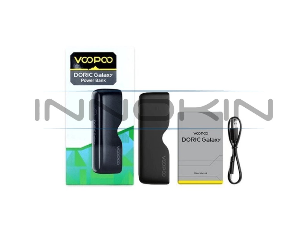 Náhradní powerbanka VooPoo Doric Galaxy Pod slouží pro efektivní dobíjení e-cigarety VooPoo Doric Galaxy Pen Kit na cestách. Jedná se o samostatnou powerbanku, elektronická cigareta není součástí balení. V powerbance se nachází integrovaná baterie s kapacitou 1800mAh pro opakované dobíjení e-cigarety. Samotnou powerbanku potom můžete nabíjet prostřednictvím moderního portu USB-C s podporou nabíjení 5V/2A.